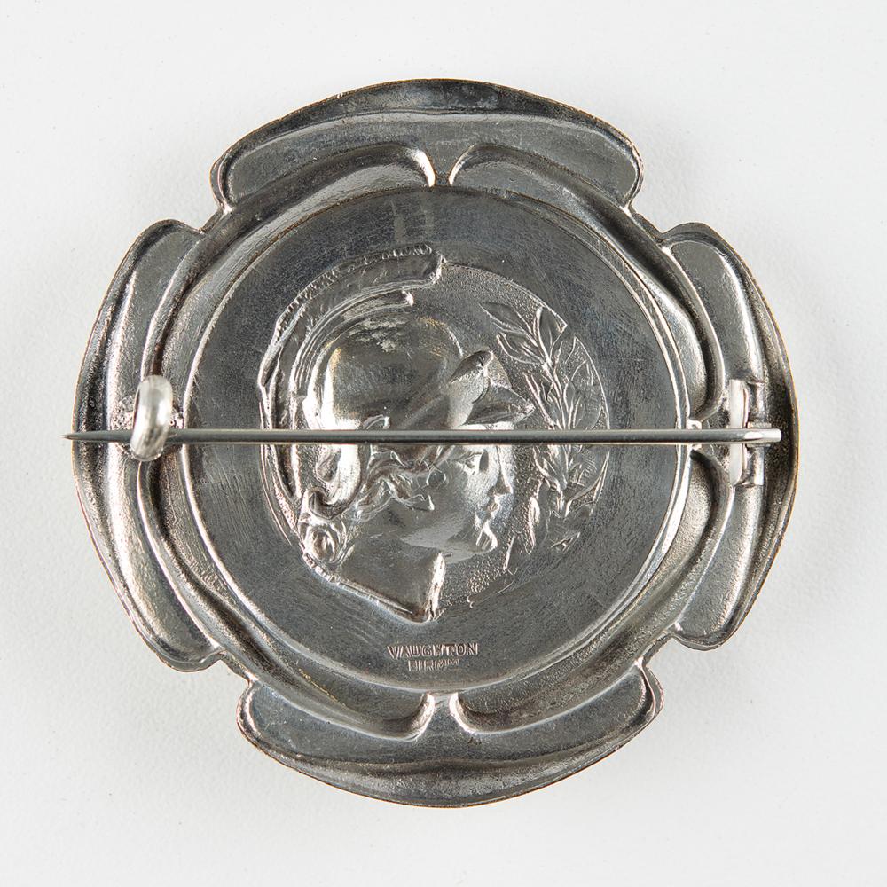 Rare ‘Committee’ badge from the London 1908 Olympics. Silvered bronze, 42 gm, 57 mm in diameter, stamped on the reverse with a Vaughton of Birmingham maker's mark. The badge depicts the head of Athena facing a laurel branch and encircled by a dark blue enameled border with the text, "Olympic Games London 1908, Committee." A bright and beautiful badge from an Olympiad that extended for over six months—the longest in modern history.