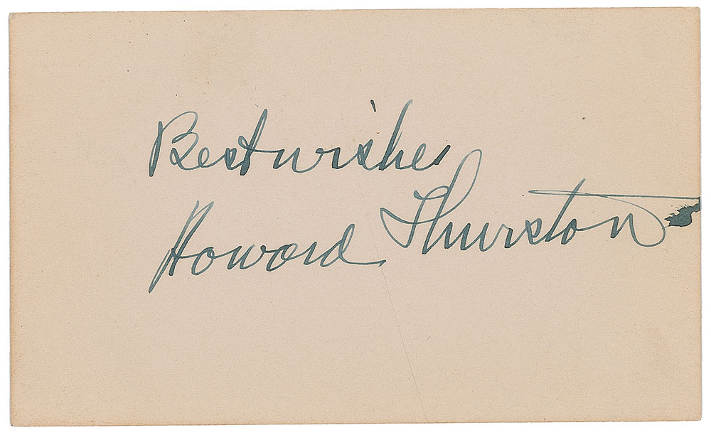 Vintage fountain pen signature, "Best wishes, Howard Thurston,” on an off-white 5 x 3 card. In fine condition.