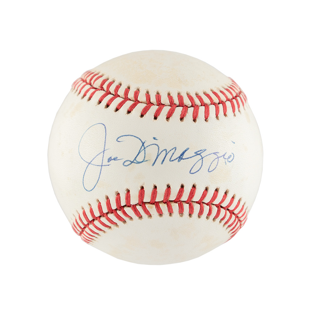Official Rawlings American League (Brown) baseball signed in ballpoint on the sweet spot by DiMaggio. In fine condition, with some light staining.