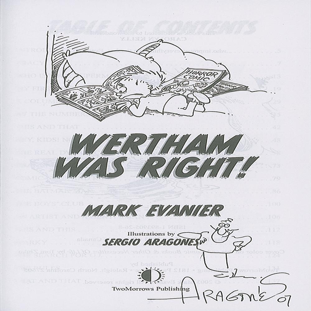 Three first edition softcover books—Louder Than Words, Wertham Was Right!, and Actions Speak—each signed on the title page in black felt tip by Sergio Aragones, all boasting additional sketches including three self-portraits and one of Alfred E. Neuman. In fine condition.