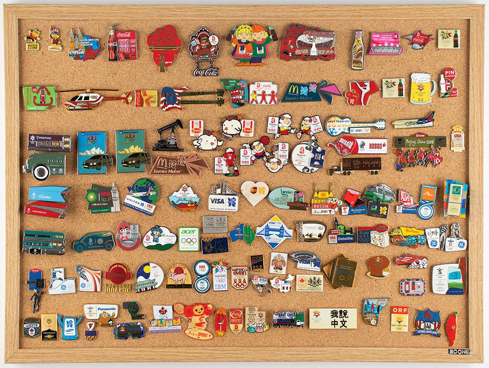 Terrific collection of 111 sponsorship pins from various Summer and Winter Olympic Games dating back to 1984, ranging in size from .5 x .75 to 3.5 x 1, which includes the following sponsors: Coca Cola (Los Angeles 1984, Atlanta 1996, Nagano 1998, Lillehammer 2004, Beijing 2008, London 2012), McDonald’s (London 2012), Buick, Cadillac, Chevrolet, GMC, and Pontiac (Salt Lake City 2002), Delta (Atlanta 1996), UPS (Nagano 1998, Sydney 2000, London 2012), Tyson (Beijing 2008), General Motors (Sydney 2000), Adidas (London 2012), Panasonic (Vancouver 2010), Lenovo (Beijing 2008), VIA (London 2012), and more. In overall fine condition.