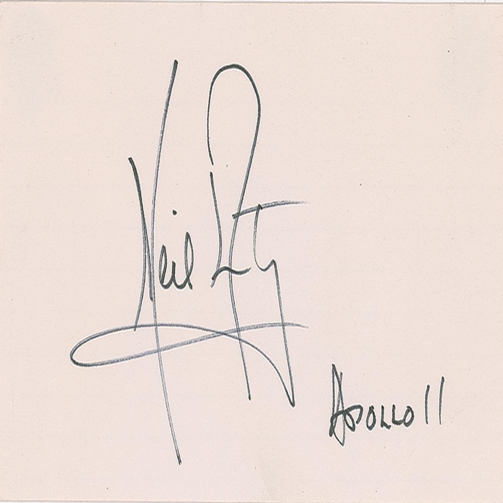 Hugely desirable felt tip signature, "Neil Armstrong, Apollo 11,” on a white 5 x 3 card. In fine condition, with a light crease to the lower right corner. From the collection of Stephen Adamson.