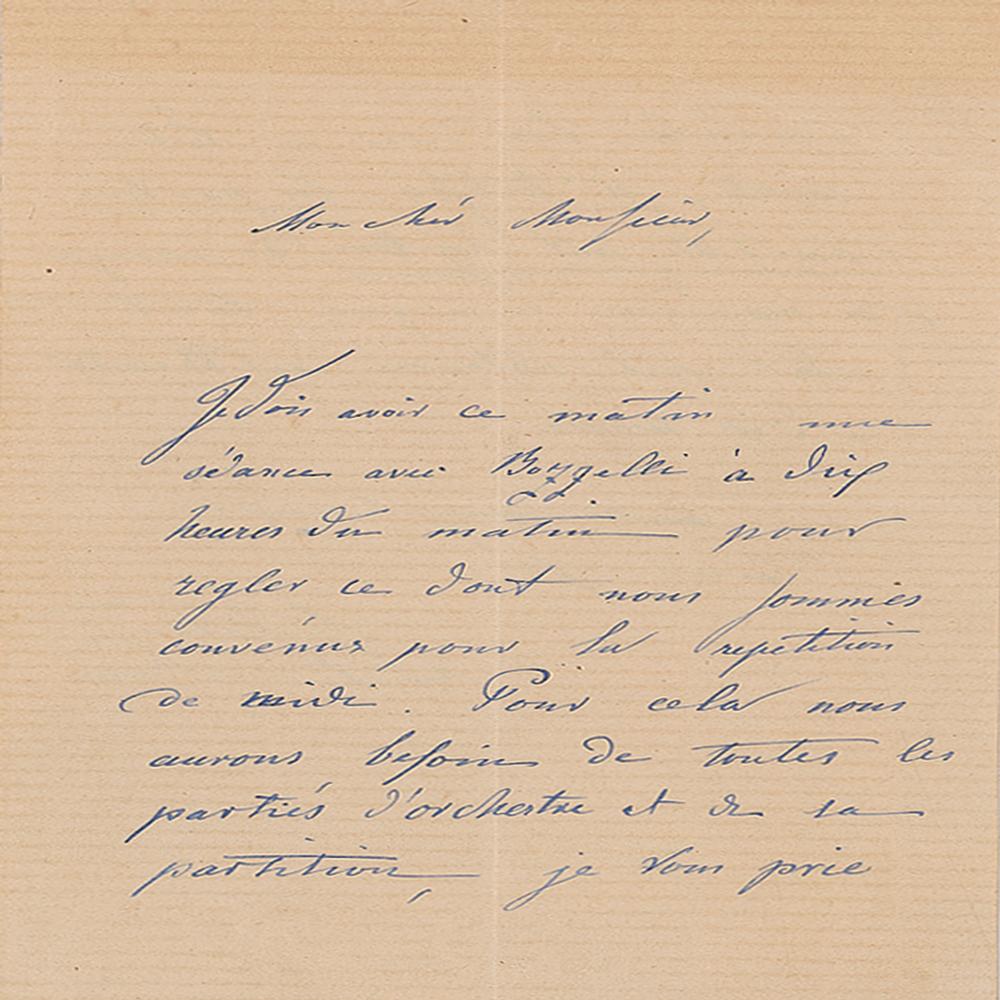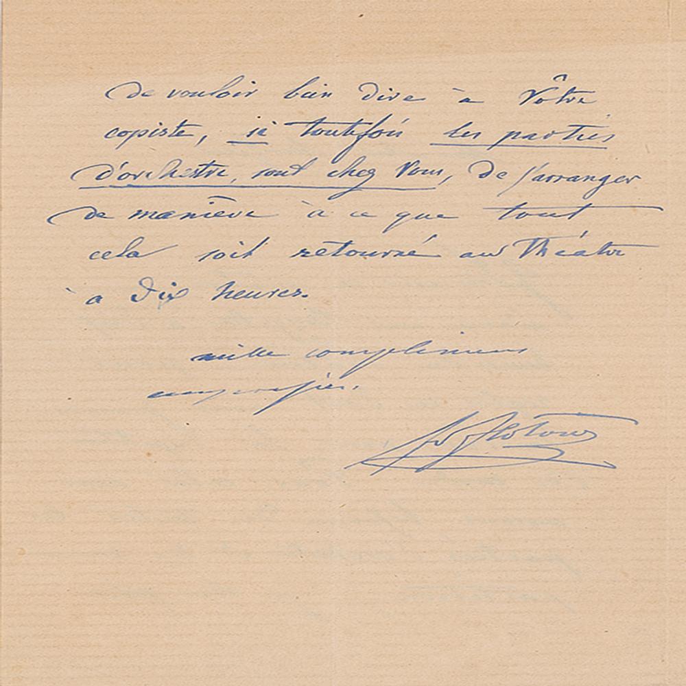 German composer (1812-1883) chiefly remembered for his opera Martha, which was popular in the 19th century. Untranslated ALS in French, signed “F. v. Flotow,” one page both sides, 4.25 x 6.5, no date. In fine condition. From the collection of Stephen Adamson.