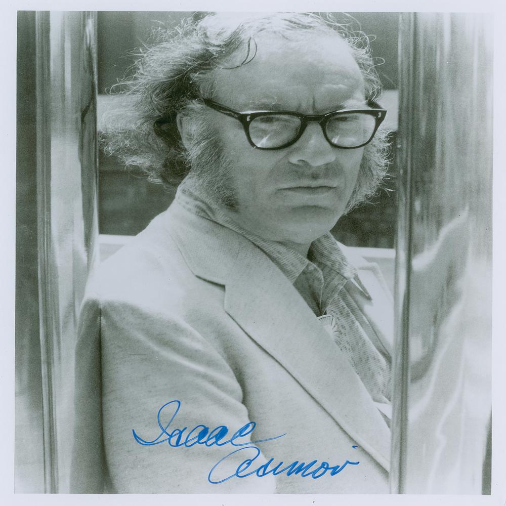 Glossy 8 x 10 photo of the great science fiction author, signed in blue felt tip. In very fine condition.