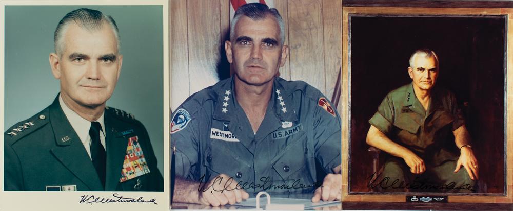 Three color 8 x 10 portraits of Westmoreland in uniform, each signed in black felt tip, "W. C. Westmoreland." In overall fine condition.