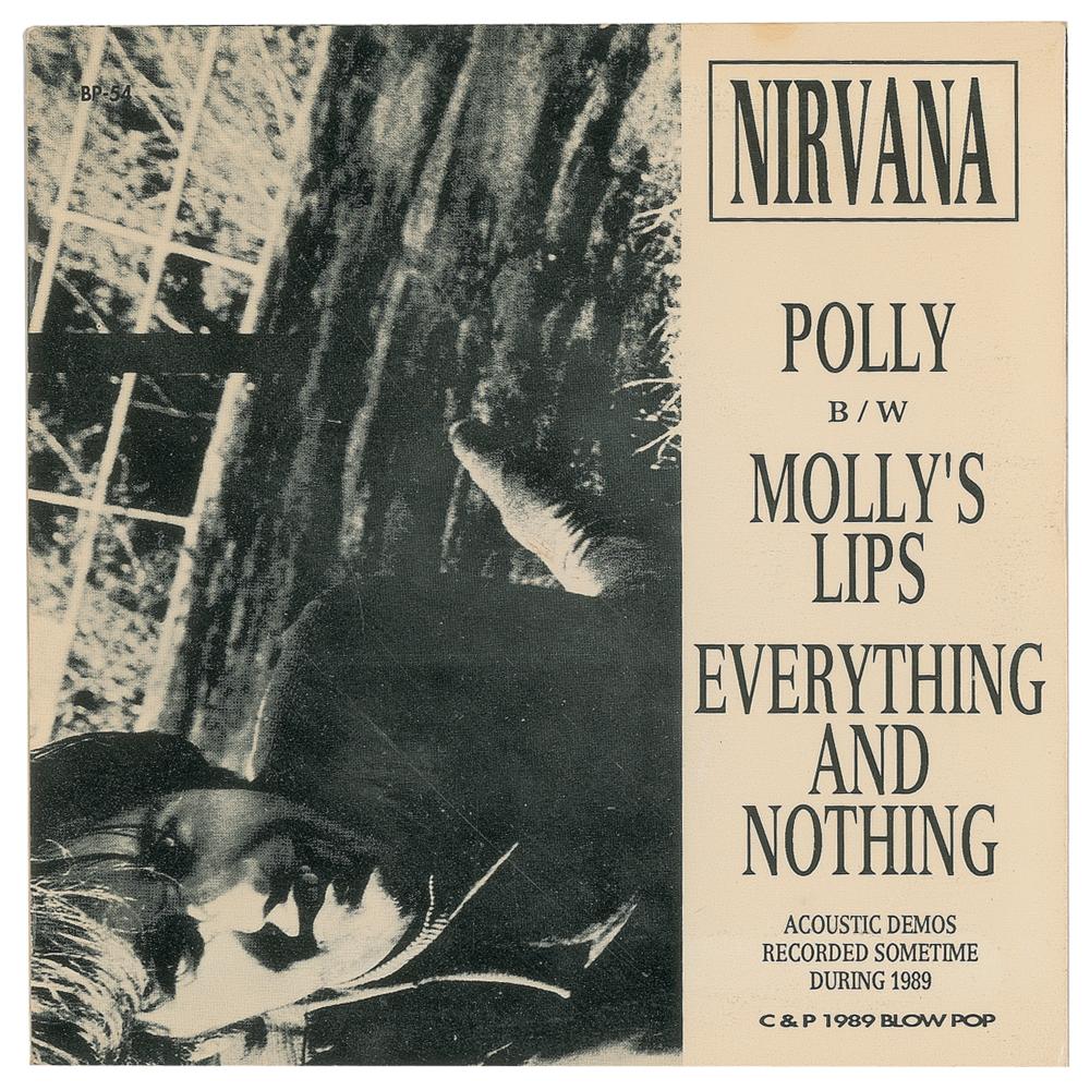 Rare unofficial Blow Pop 7-inch bootleg album entitled Acoustic EP, released in marbled gray. Back cover lists the songs 'Polly,' 'Molly's Lips,' and 'Everything and Nothing,' with caption below reading: "Acoustic demos recorded sometime during 1989." In fine condition. All three tracks were mislabeled; the correct track listing should read: 'Sappy,' 'Spectre,' and 'Polly.' The record is included.