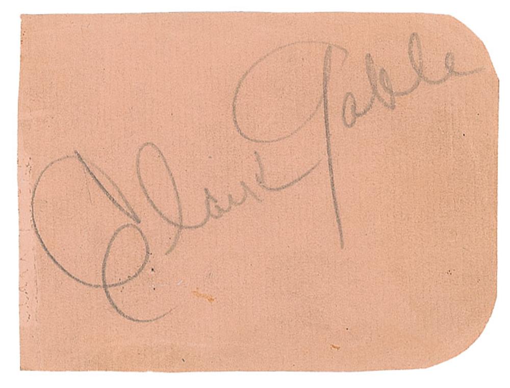 Vintage pencil signature, "Clark Gable,” on a beige 4.25 x 3.25 album page. In fine condition, with light soiling and trimmed edges.