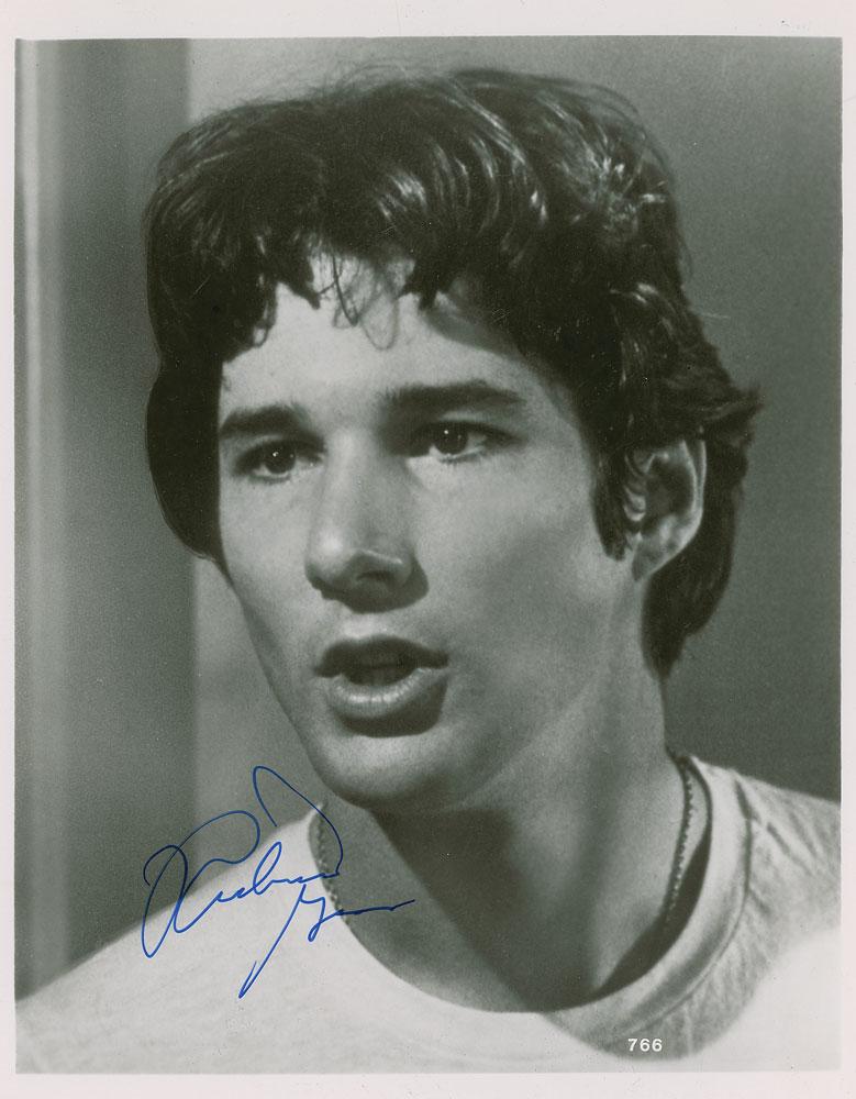 Glossy 7.75 x 10 photo of a young Richard Gere, signed in blue felt tip. In fine condition.