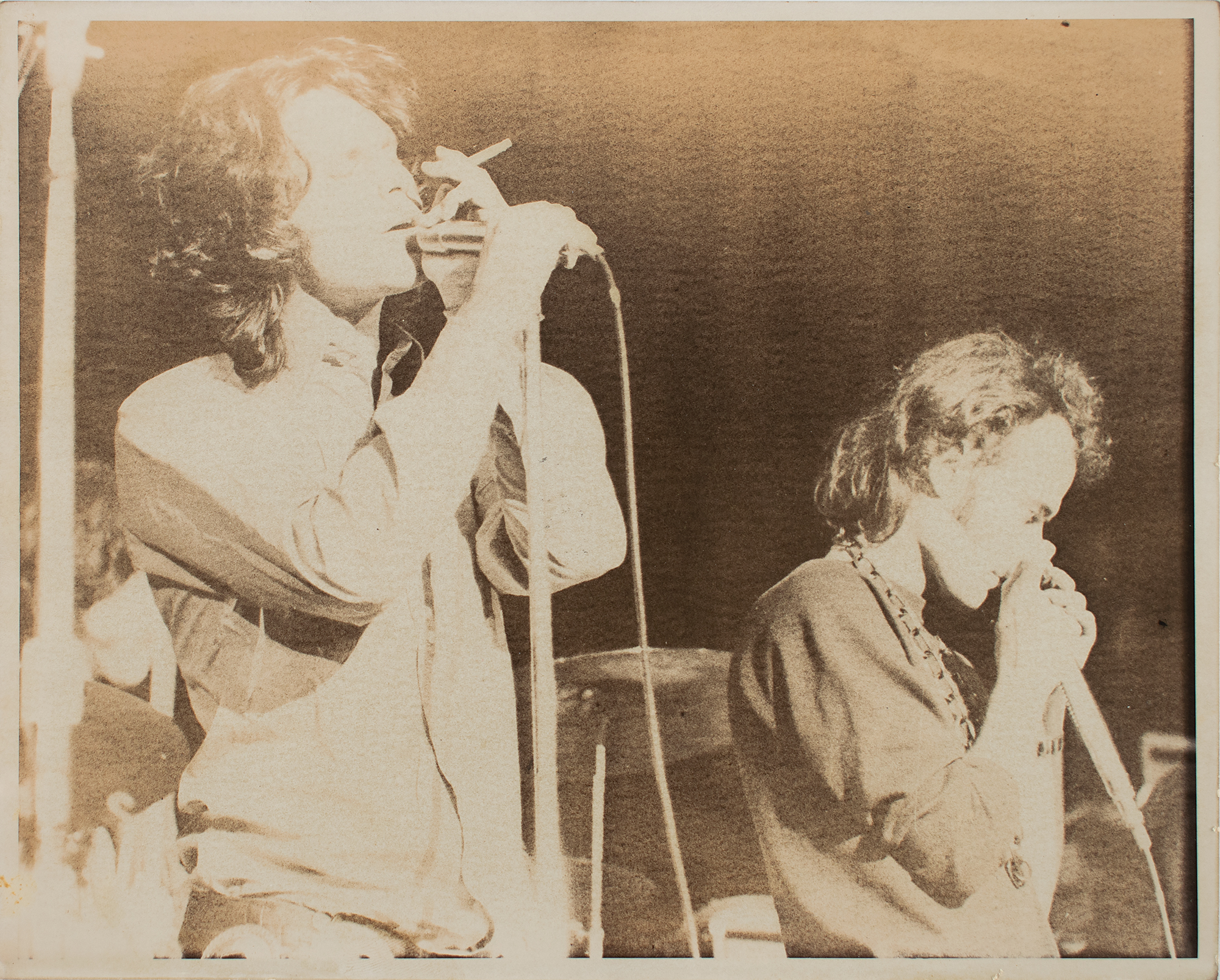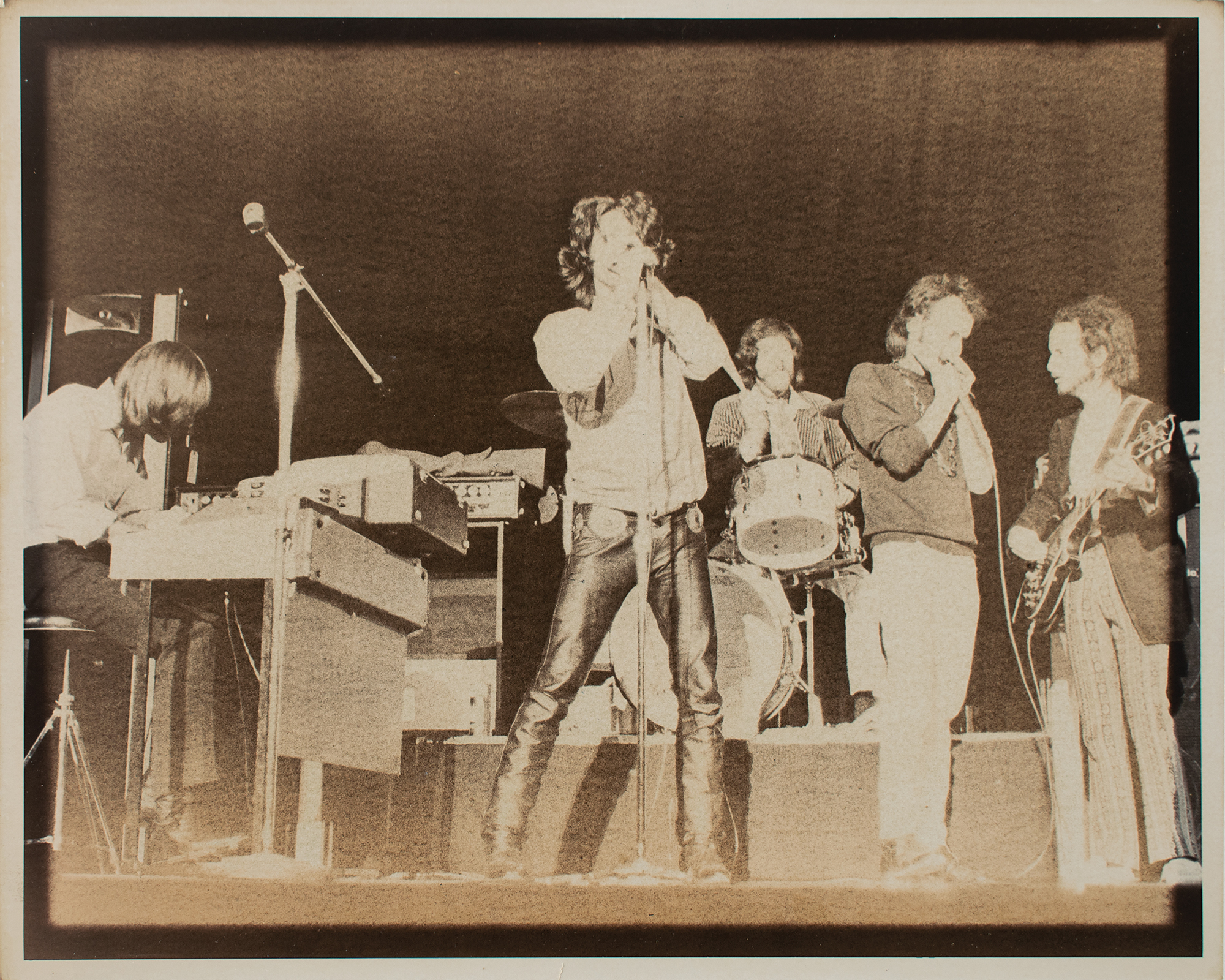 During the concert, Glover played harmonica on 'Back Door Man,' 'Little Red Rooster,' 'Wild Child,' 'Money,' and 'Love Me Two Times.' The show received positive reviews, and Glover's interview with the group—including manager Bill Siddons, was published in Circus magazine in four parts from March-July 1969. Interestingly, a local newspaper's coverage of the concert noted: 'Tony Glover would appreciate if anyone who happened to have taped the Doors concert—quite accidentally, or course—would get in touch with him through Melvin McCosh of McCosh's Bookstore.' A fantastic grouping from a significant show, demonstrating Glover's excellent abilities as both music journalist and musician.