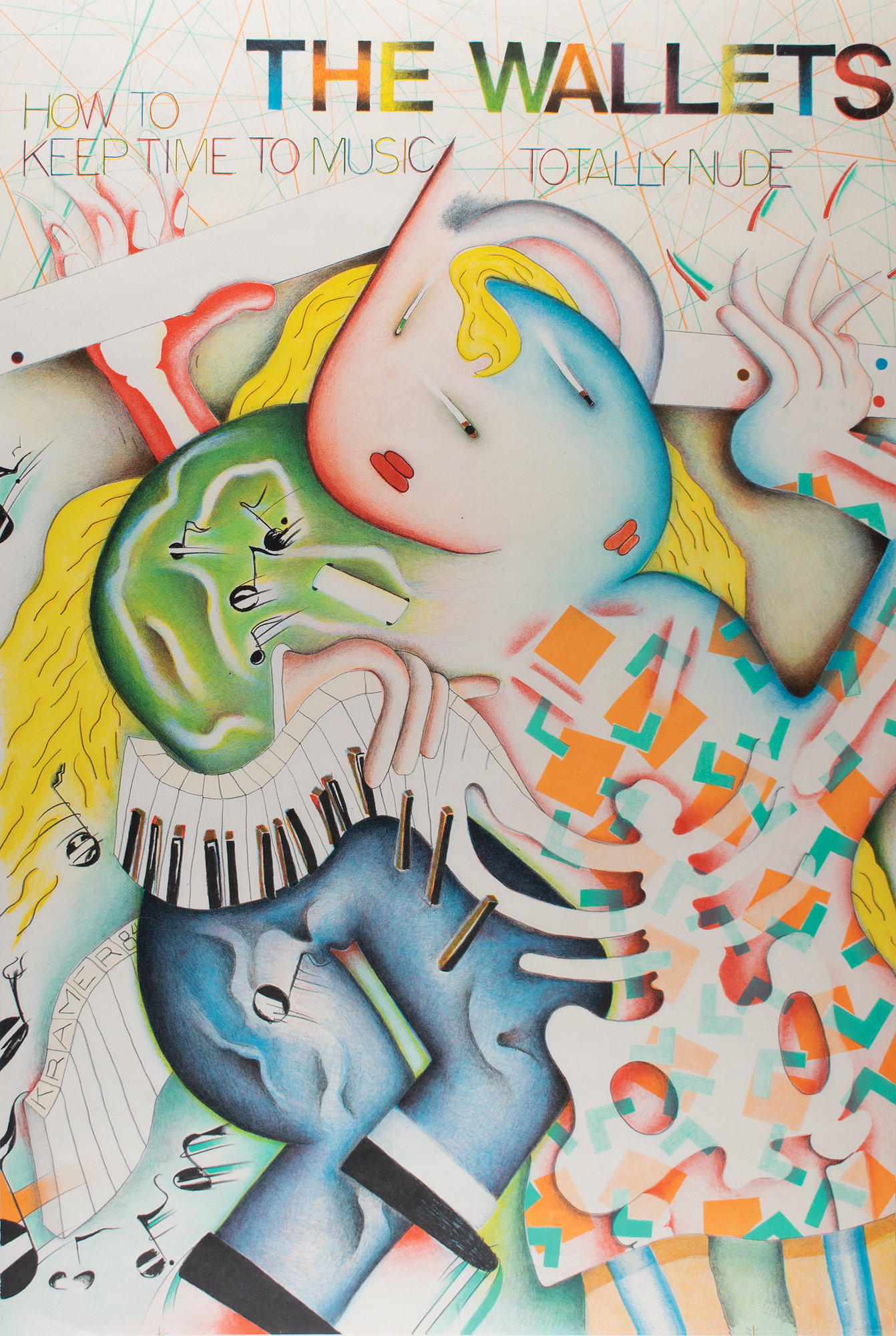 Two color 24.75 x 37 posters for ‘Totally Nude / How To Keep Time To Music,’ the 1986 single by post-punk band The Wallets.