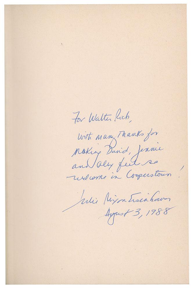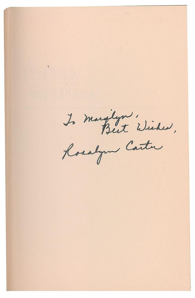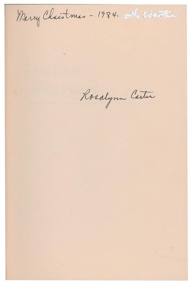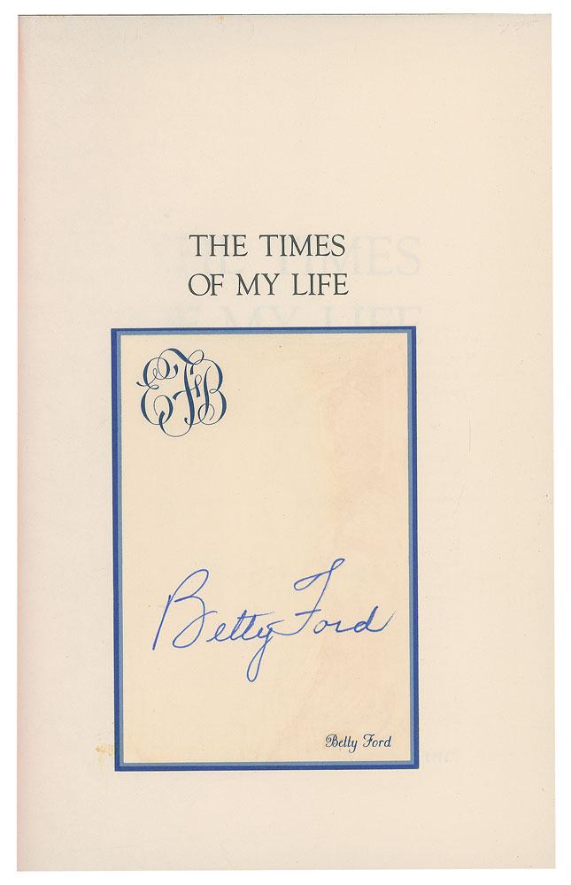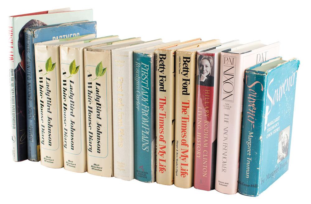 Collection of 12 books signed by first ladies and their children, including: Eleanor Roosevelt (Partners: The United Nations and Youth), Margaret Truman (Souvenir: Margaret Truman's Own Story, inscribed), Lady Bird Johnson (3 copies of A White House Diary, all inscribed with two on bookplates), Julie Nixon Eisenhower (Pat Nixon: The Untold Story, inscribed), Betty Ford (two copies of The Times of My Life, one inscribed and one signed on bookplate), Nancy Reagan (First Lady: A Portrait of Nancy Reagan, inscribed), Rosalynn Carter (two copies of First Lady from Plains, both inscribed, with one recipient whited out), and Hillary Clinton (Living History). In overall very good to fine condition.