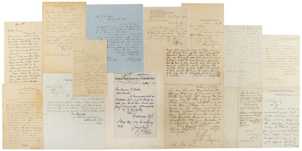Group of 15 items signed by Union officers, including: William F. 'Baldy' Smith (ALS), Stewart Van Vliet (LS), Montgomery Meigs (war-dated endorsement), Rufus Saxton (ALS), O. S. Ferry (ALS), George Cadwalader (ALS), John M. Palmer (ADS), George W. Morgan (ALS), Rufus King (ALS), Darius N. Couch (ALS), Fitz John Porter (ALS), Robert C. Schenck (ALS), William T. Clark (ALS), John E. Wool (ALS), and George F. Shepley (ALS). In overall fine condition.
