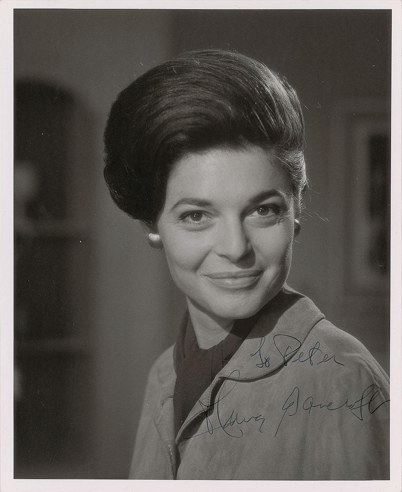 Gorgeous glossy 8.25 x 10 photo of Bancroft turning her attention to the camera, signed and inscribed in fountain pen, "To Peter, Anne Bancroft.” In fine condition.