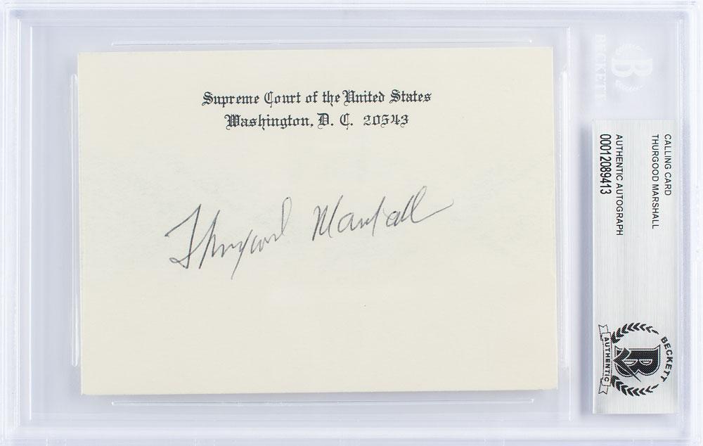 Ballpoint signature, "Thurgood Marshall,” on an off-white 4.75 x 3.5 Supreme Court of the United States card. In fine condition. Encapsulated in a Beckett authentication holder.