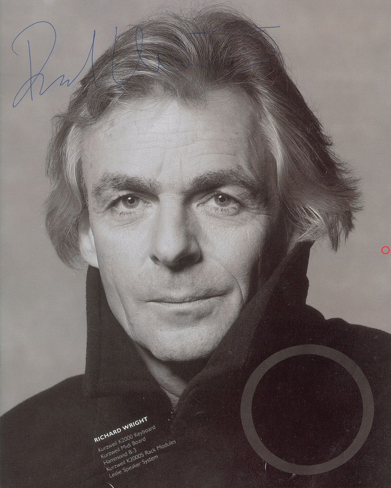 Original program for the European leg of Pink Floyd’s 1994 The Division Bell Tour, the band’s final tour as a full touring group, 32 pages, 9.5 x 12, signed inside on their respective page in blue ballpoint by David Gilmour, Nick Mason, and Richard Wright. In fine to very fine condition. Consignor notes that the signatures were obtained when the band performed at Earls Court, London on October 20, 1994. Accompanied by a certificate of authenticity from Tracks.