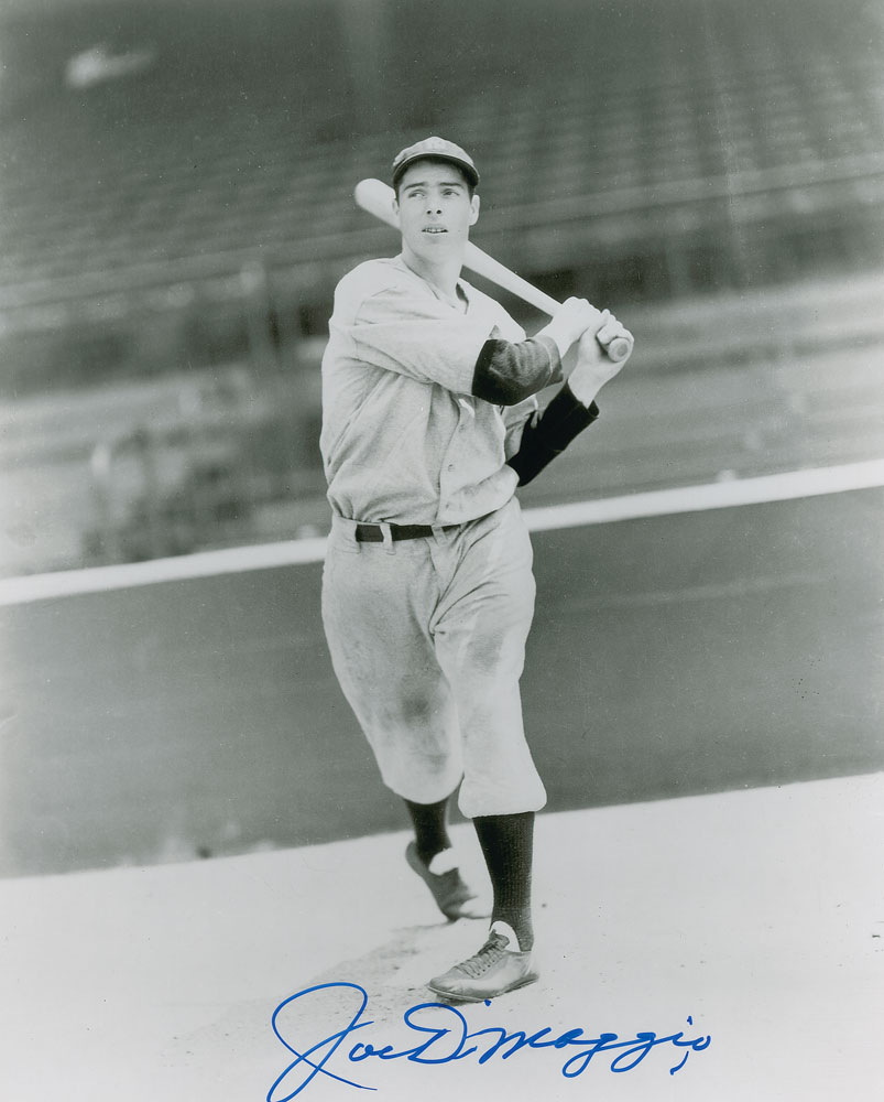 Three glossy 8 x 10 photos of the 'Yankee Clipper' in his New York uniform, each signed in felt tip, "Joe DiMaggio." In overall fine condition.