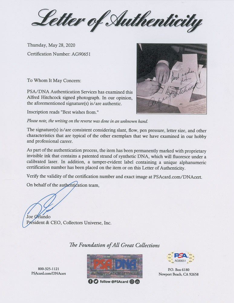 Alfred Hitchcock Signed Photograph
