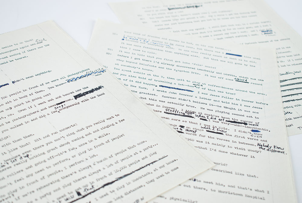 Bob Dylan Hand-Annotated 1971 Interview Transcript (All Tapes, First Correction)