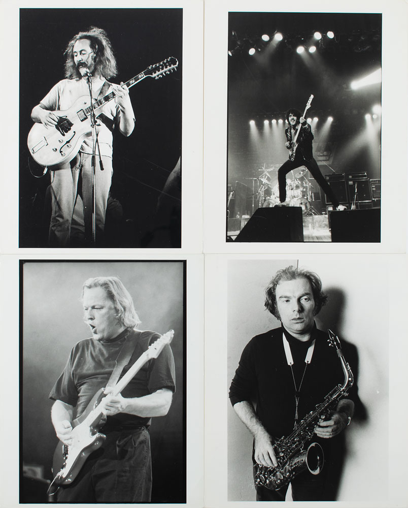 Four original glossy 8 x 10 silver gelatin photos of rock musicians—David Crosby, David Gilmour, Van Morrison, and Phil Lynott—printed from the original negatives circa 1970s-80s. All have London Features International copyright stamps or labels on the reverse. In overall fine condition.