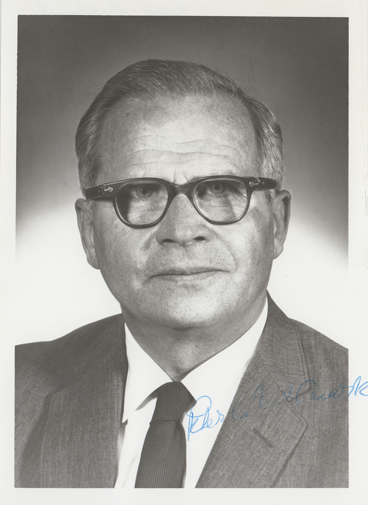 Hungarian-American engineer (1906-1977) who, during his time with Columbia Records, was instrumental in developing the long-playing microgroove 331⁄3 rpm phonograph disc. Glossy 5 x 7 photo of the gramophone record pioneer, signed in blue ballpoint by Peter Carl Goldmark. In fine condition, with a vertical crease to right edge and a faint paperclip impression to top edge.