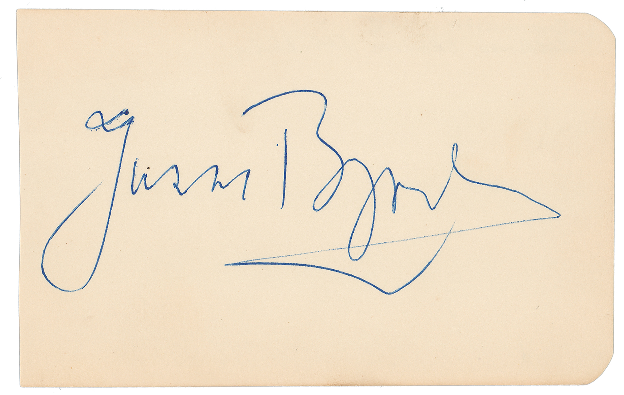 Much-lauded Swedish tenor (1911-1960) who was one of the most popular opera stars of his era. Vintage ballpoint signature, "Jussi Bjorling,” on an off-white 5.25 x 3.25 album page. In fine condition.