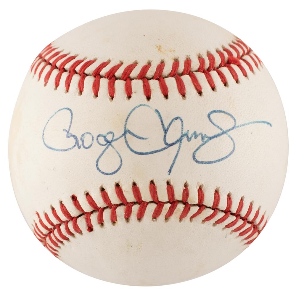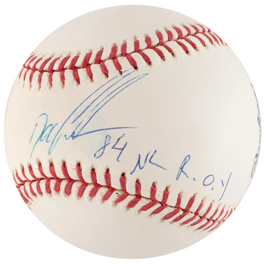 Three official Rawlings baseballs individually signed on the sweet spot in ballpoint by Cy Young award winners Roger Clemens, Randy Johnson, and Dwight Gooden, who adds “84 NL R.O.Y.” In overall fine condition, with toning to the Clemens ball.