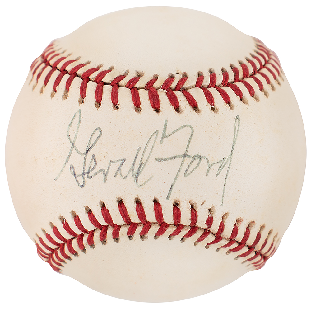 Official Rawlings National League (Coleman) baseball signed in ballpoint on the sweet spot, "Gerald Ford." In fine condition.