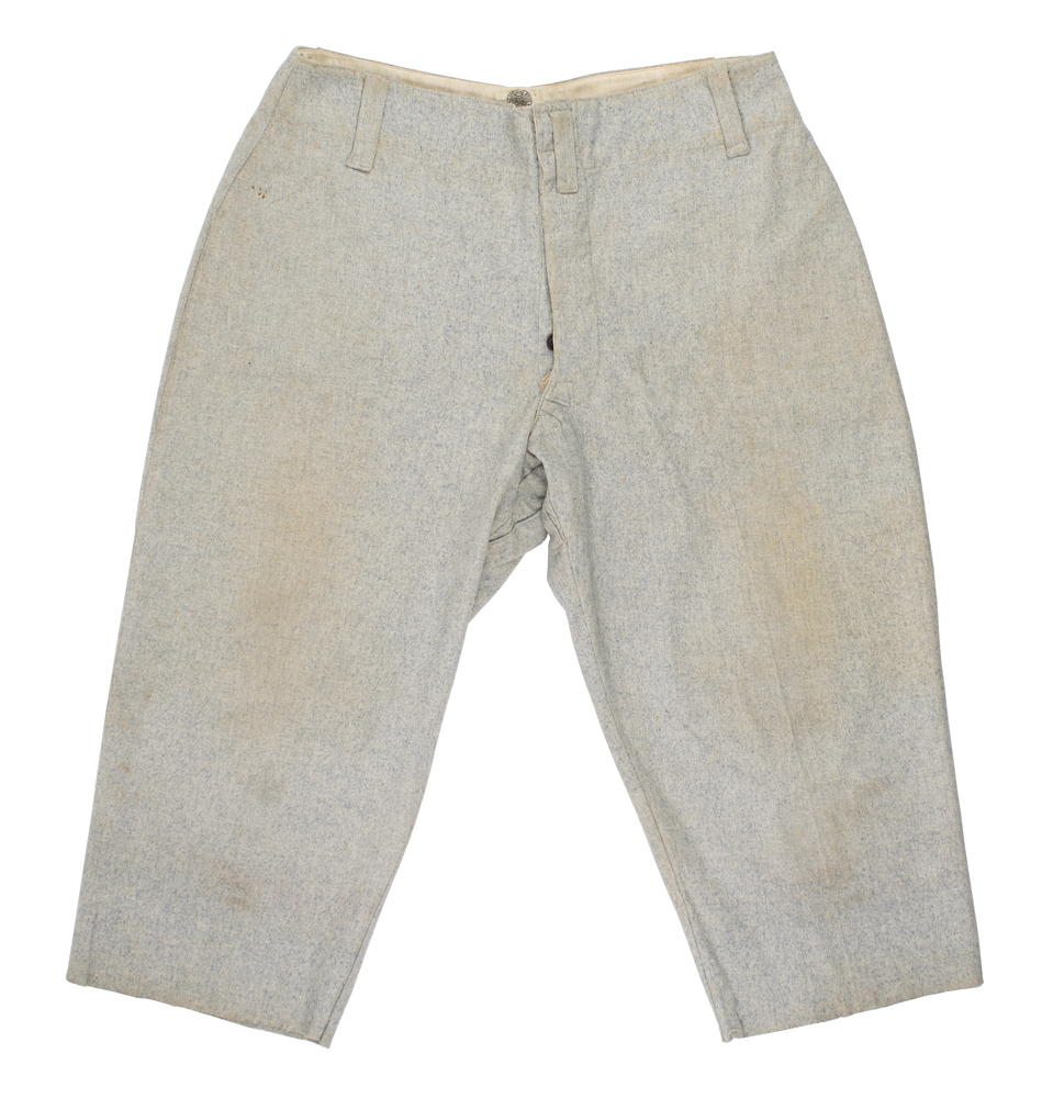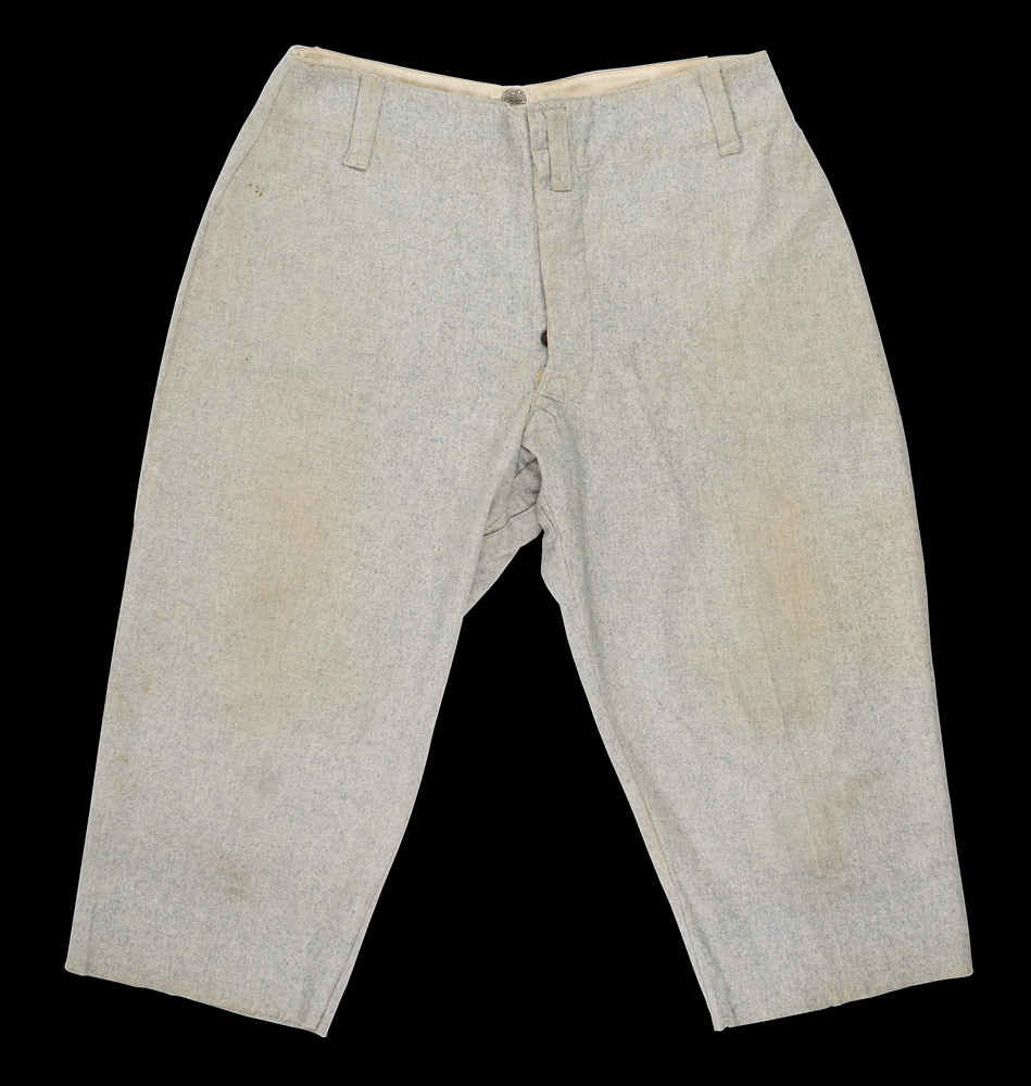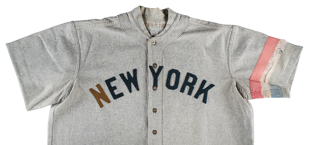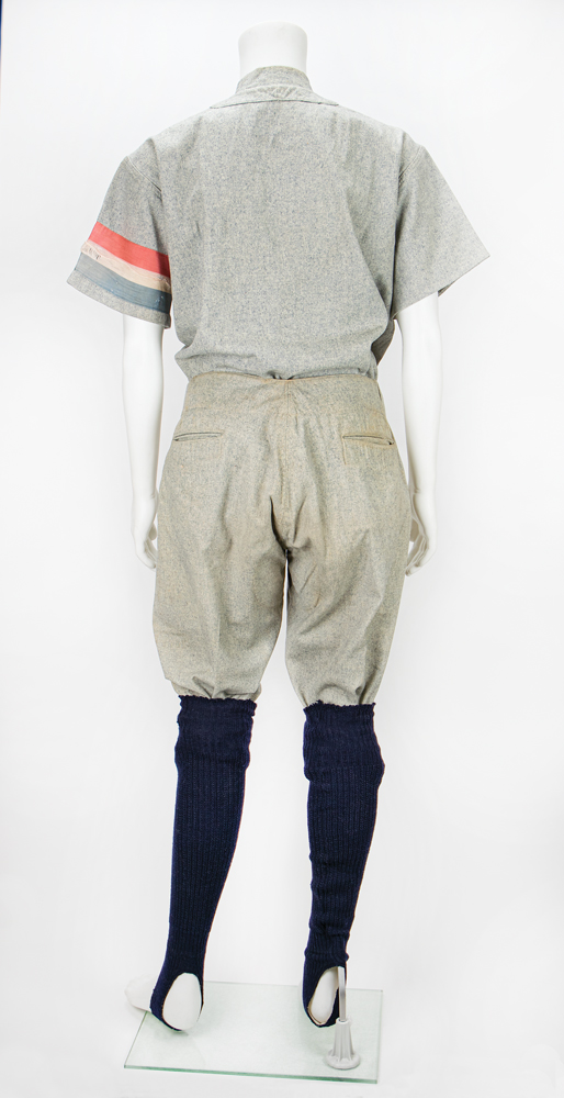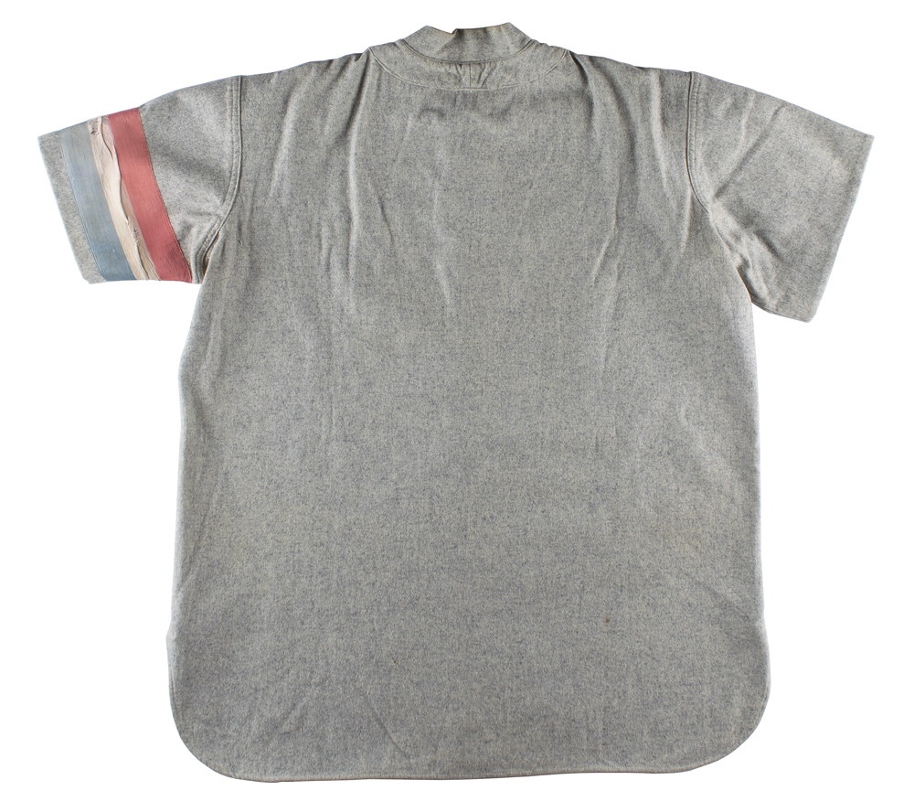 Any authentic, game-used uniform from the deadball era is virtually unheard of—that this comes from one of baseball's early stars, and arguably its most legendary franchise, makes this example truly remarkable. Known for his steady defense and stable demeanor, Peckinpaugh served as the Yankees' captain from 1914 to 1921. The special red, white, and blue armband allows us to date it precisely to 1918, a year in which Peckinpaugh turned more double plays than any other American League shortstop and also led the league in assists. A unique and exceptionally desirable early New York Yankees uniform, worn on the road by their capable captain.