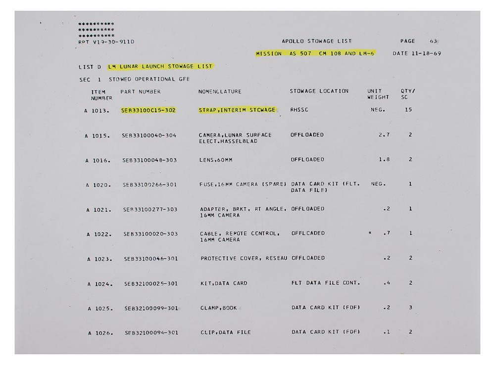 Charles Conrad's Apollo 12 Flown Lunar Module Stowage Strap