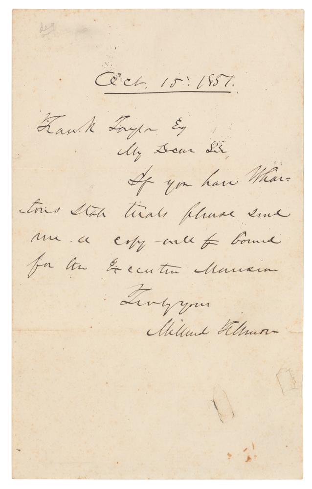 Millard Fillmore: In a handwritten letter as president, Fillmore requests a legal volume "bound for the Executive Mansion"