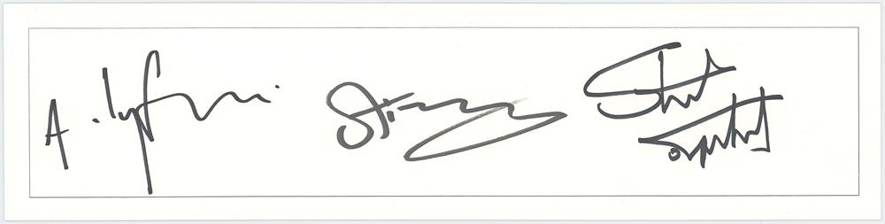 Black felt tip signatures, "Andy Summer," "Sting," and "Stewart Copeland," on a white 13 x 3.25 sheet. In very fine condition.