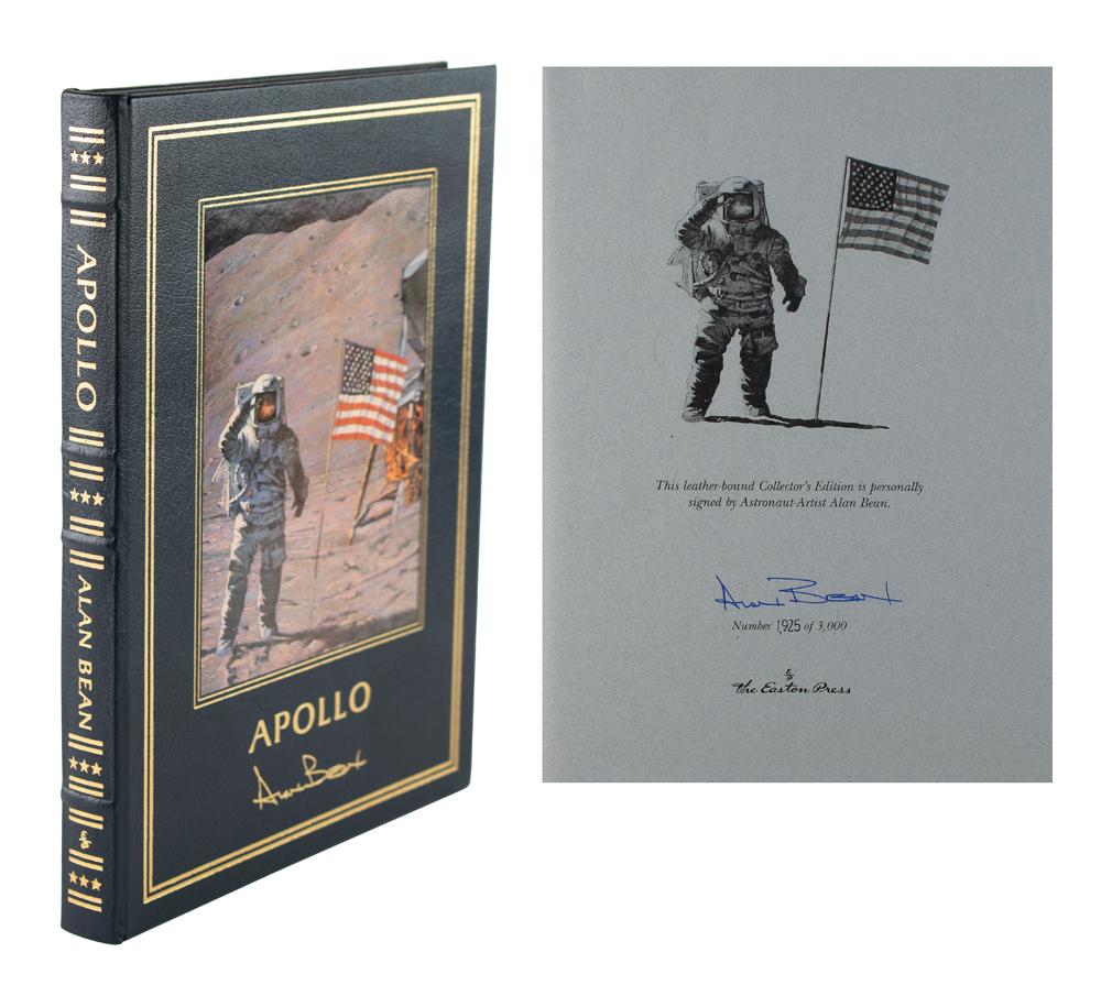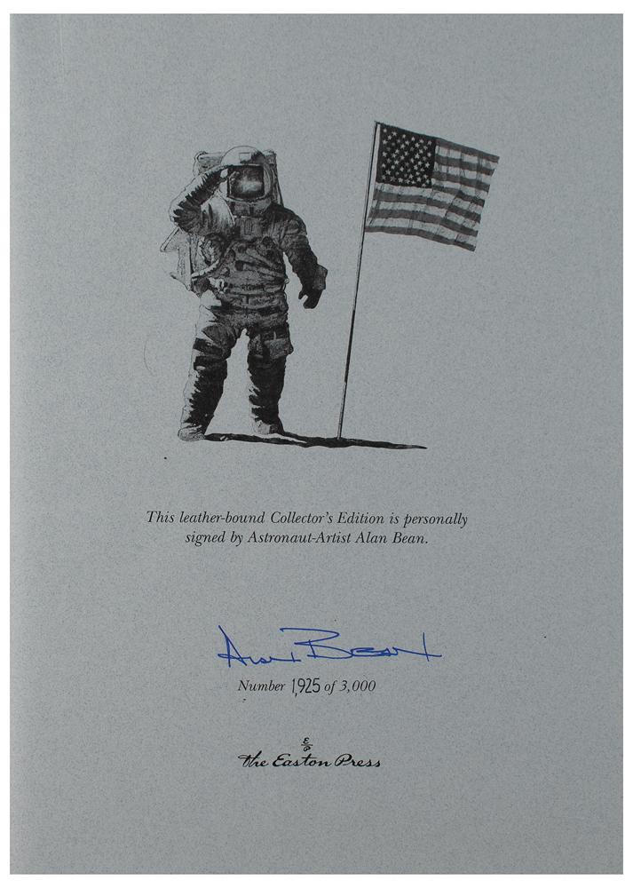 Signed book: Apollo: An Eyewitness Account. Limited collector's edition, numbered 1925/3000. Norwalk, CT: Easton Press, 1999. Leatherbound hardcover, 9.25 x 12.25, 176 pages. Signed on the colophon in blue ink by Alan Bean. In very fine condition. Accompanied by the publisher's certificate of authenticity and the original Easton Press shipping box.