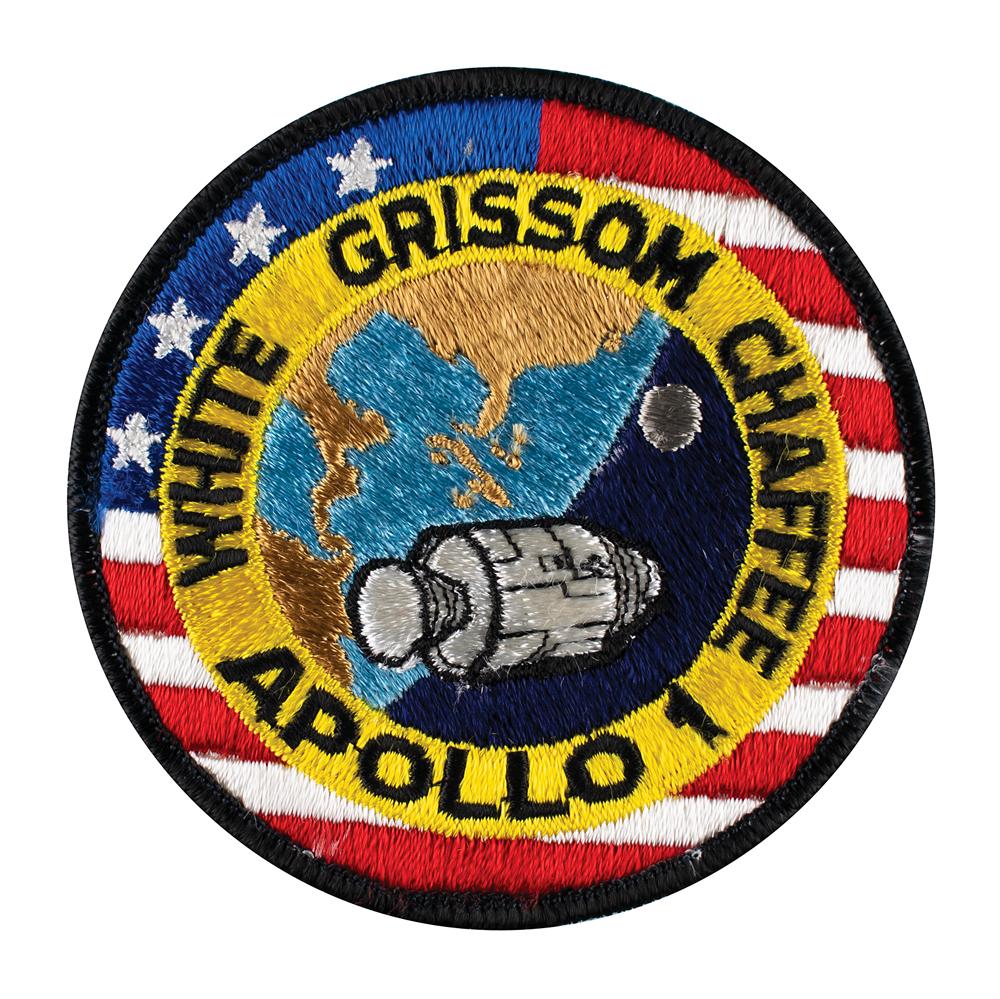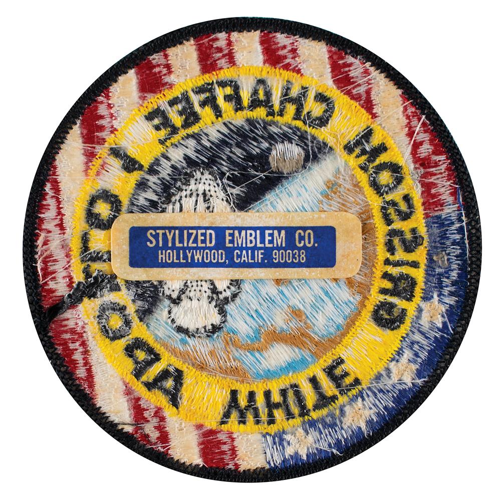 Rare official embroidered patch for the Apollo 1 mission, 3.5″ in diameter, originally and exclusively distributed to the crew and a handful of NASA workers. Reverse bears the original "Stylized Emblem Co." manufacturer's label. In fine condition.