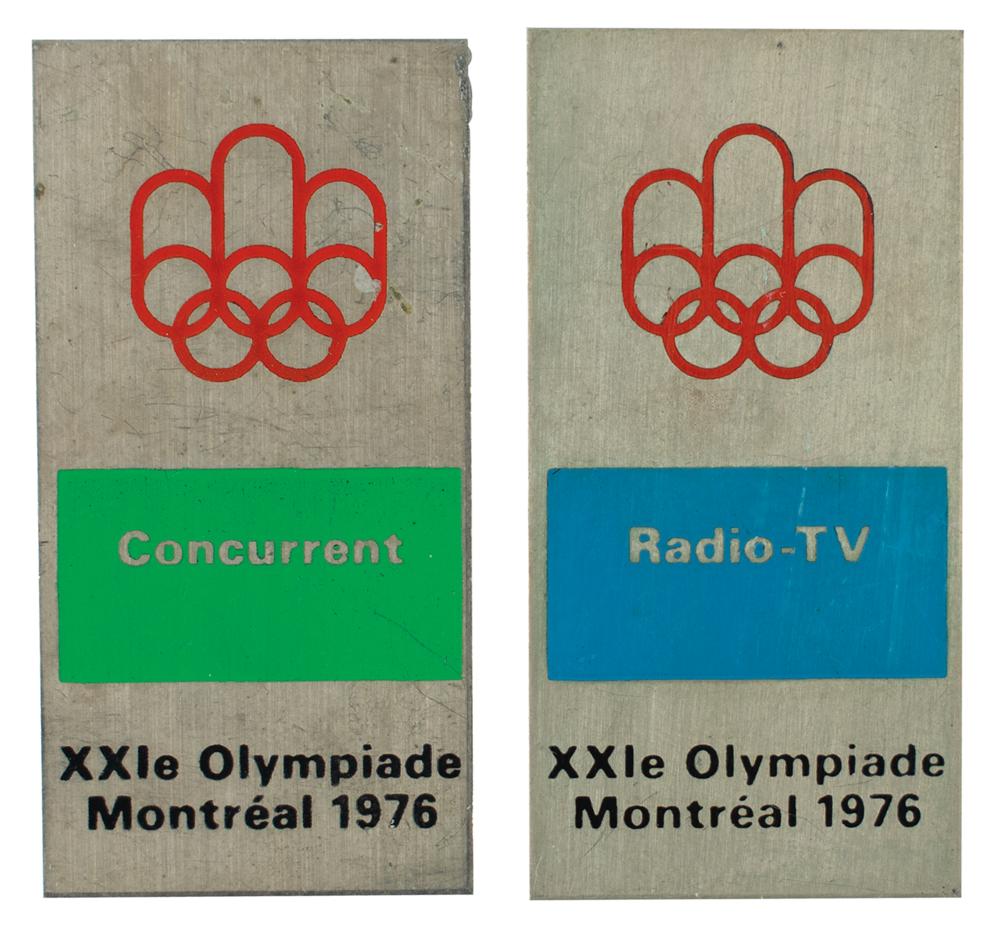 Two official badges issued for the Montreal 1976 Summer Olympics: