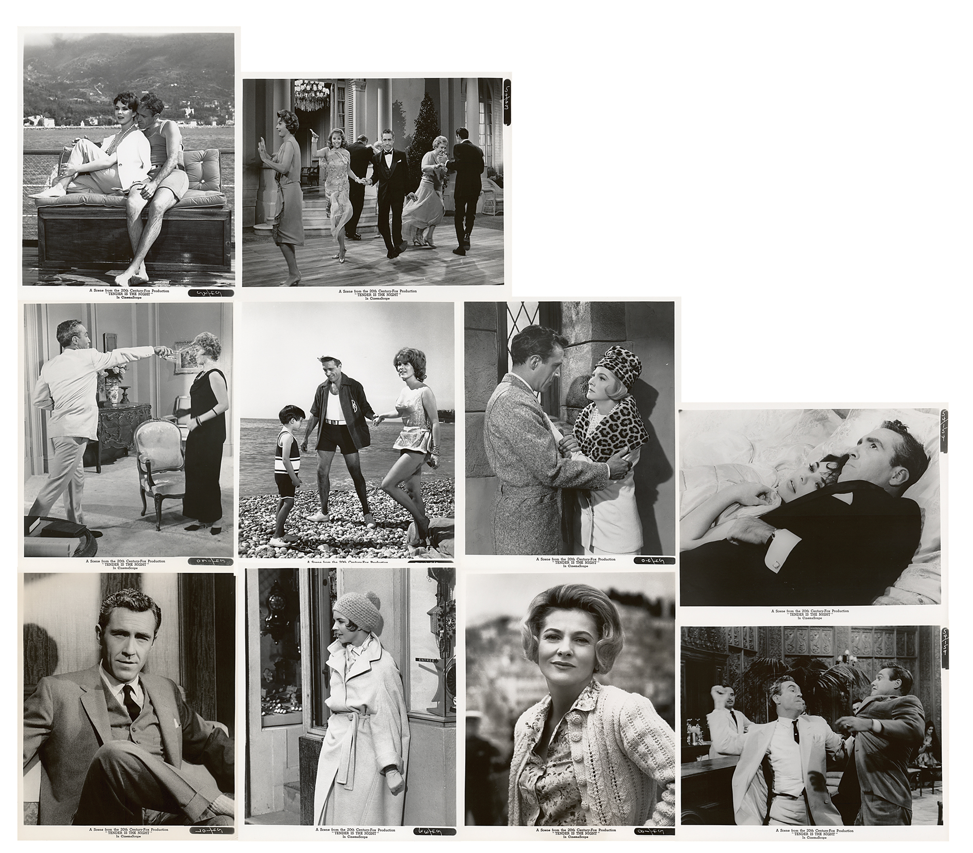 Crisp collection of 68 original 20th Century Fox glossy still photographs from the 1962 film Tender Is the Night, a film adaptation based on the 1934 novel of the same name by F. Scott Fitzgerald. The photos, 8 x 10 and 10 x 8, depict various scenes from the film, which starred Jennifer Jones as Nicole Diver, Jason Robards, Jr. as Dick Diver, Joan Fontaine as Baby Warren, and Tom Ewell as Abe North. In overall fine condition.