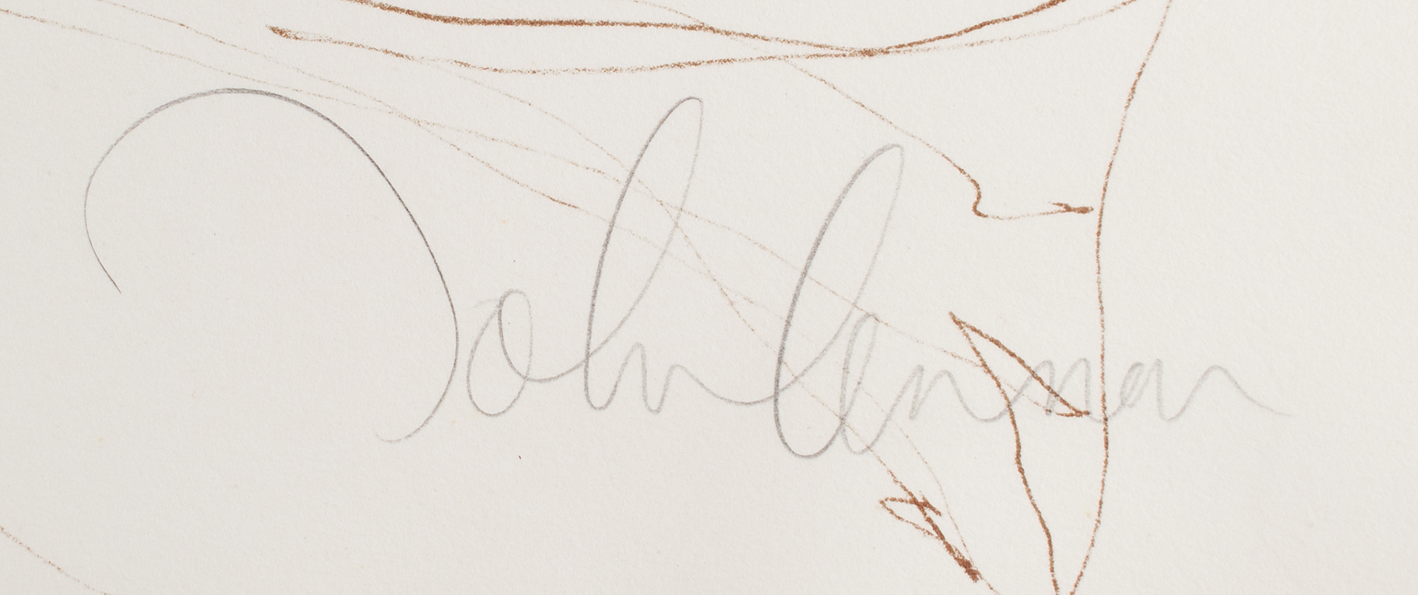 Limited edition 29.75 x 22.75 lithograph entitled 'Erotic No. 8' from Lennon's infamous 'Bag One' portfolio, numbered 220/300, prominently signed in pencil, "John Lennon." The oversized print depicts an intimate scene between Lennon and Yoko Ono. Professionally cleaned and restored to fine condition, with light edge rippling. Accompanied by a full letter of authenticity from JSA.