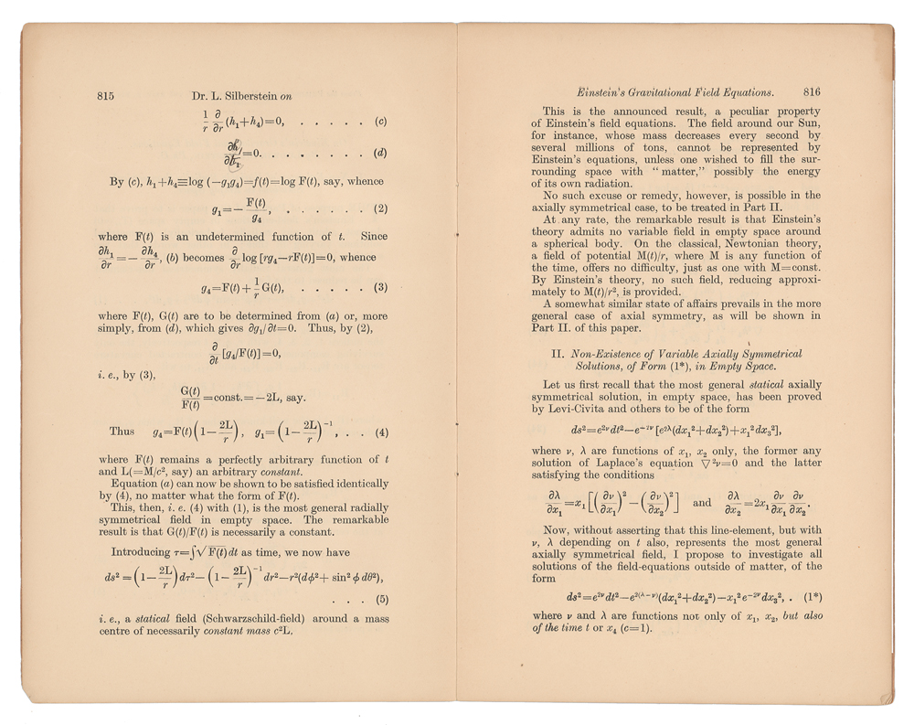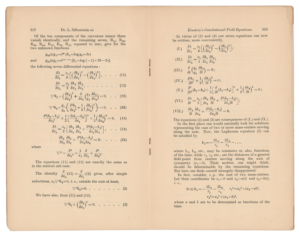 Ludwik Silberstein Signed 'On Einstein's Gravitational Field Equations' Offprint Booklet