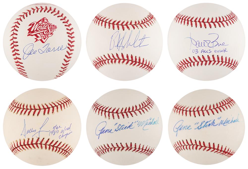 Six official Rawlings baseballs, all signed in ballpoint by managers of the New York Yankees. Signers are: Joe Torre, Aaron Boone ("03 ALCS GW HR"), Buck Showalter, Dallas Green ("1980 World Champion"), and Gene 'Stick' Michael (2). In overall fine condition. In overall fine condition, with Steiner holograms affixed to all but the Green ball.