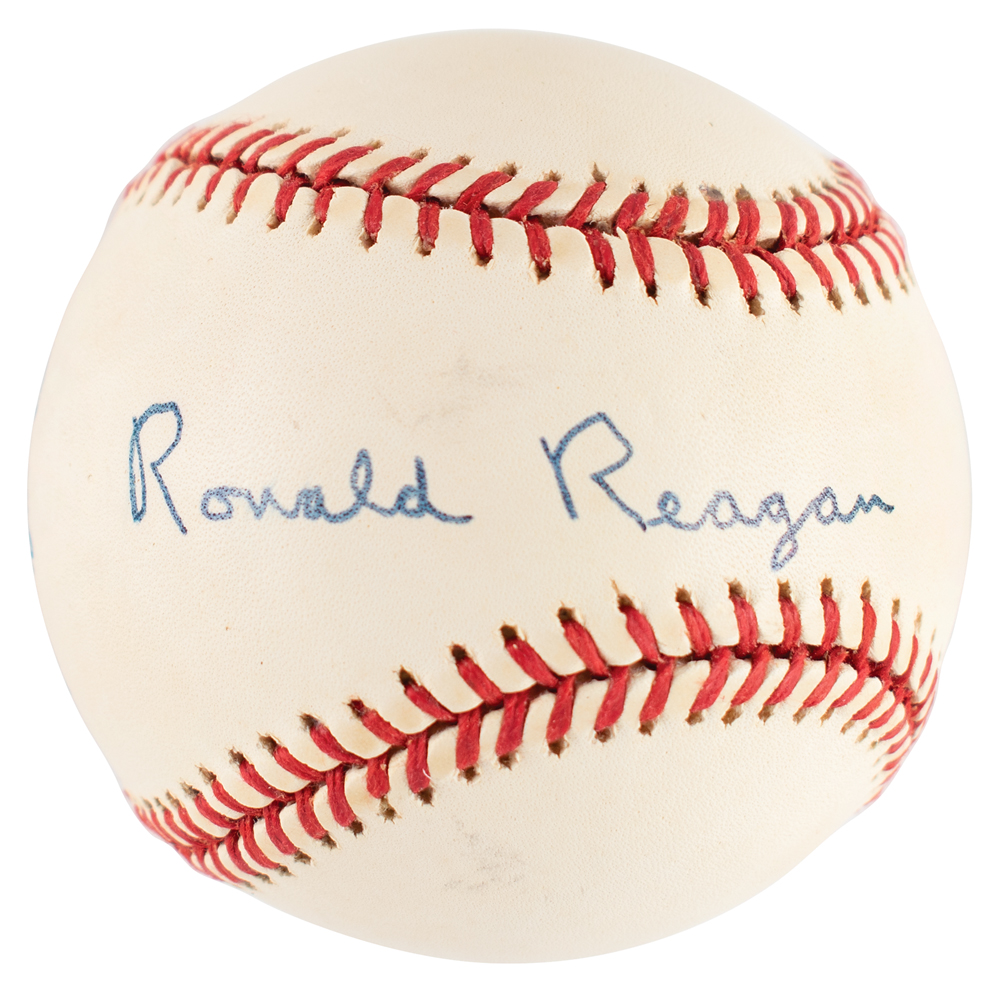 Official Rawlings American League (Brown) baseball signed in black felt tip on the sweet spot, "Ronald Reagan." In fine condition, with mild toning. A sought-after example of one of the most desirable presidential formats, combining America's history with its national pastime.