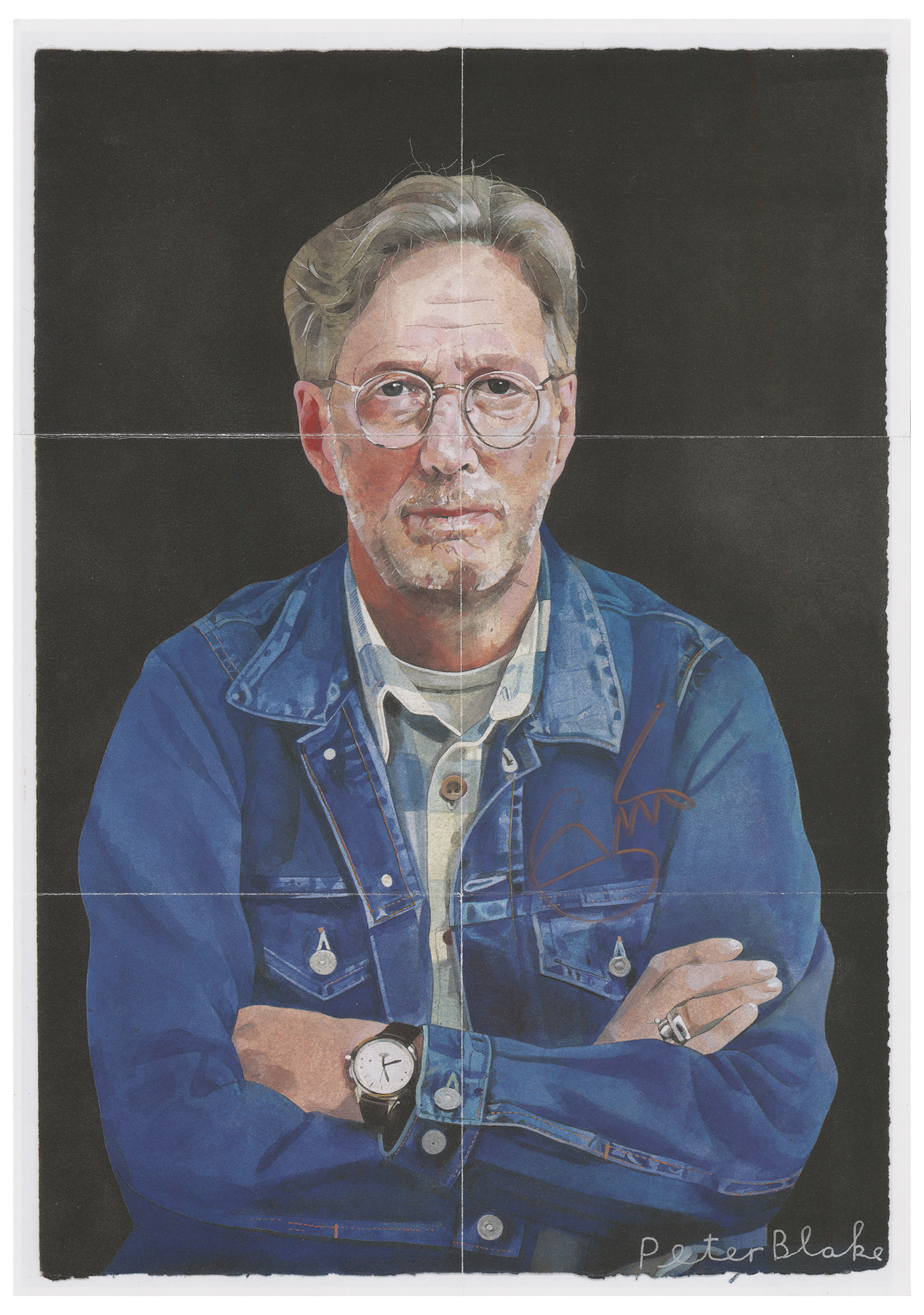 CD booklet from Eric Clapton's 2016 studio album I Still Do, unfolded into a 9.5 x 13.5 poster featuring Peter Blake's cover art portrait of Clapton, who has signed in gold ink. In fine condition, with intersecting folds as issued.