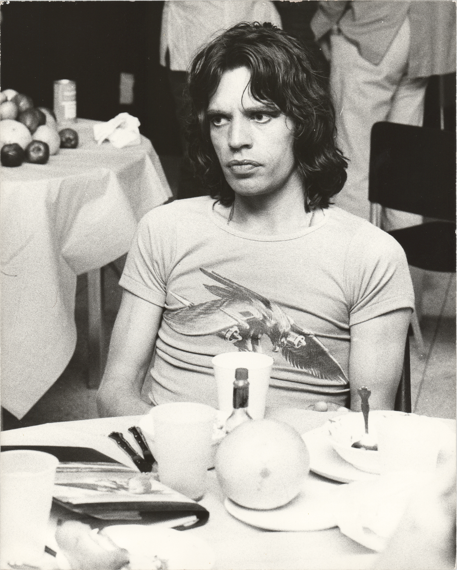 Vintage glossy 8 x 10 silver gelatin photo of Mick Jagger by Michael Brennan, which was taken backstage at Louisiana State University in Baton Rouge, Louisiana, on June 1, 1975. Reverse bears a Brennan copyright stamp. In fine condition. Accompanied by a certificate of authenticity from Tracks.