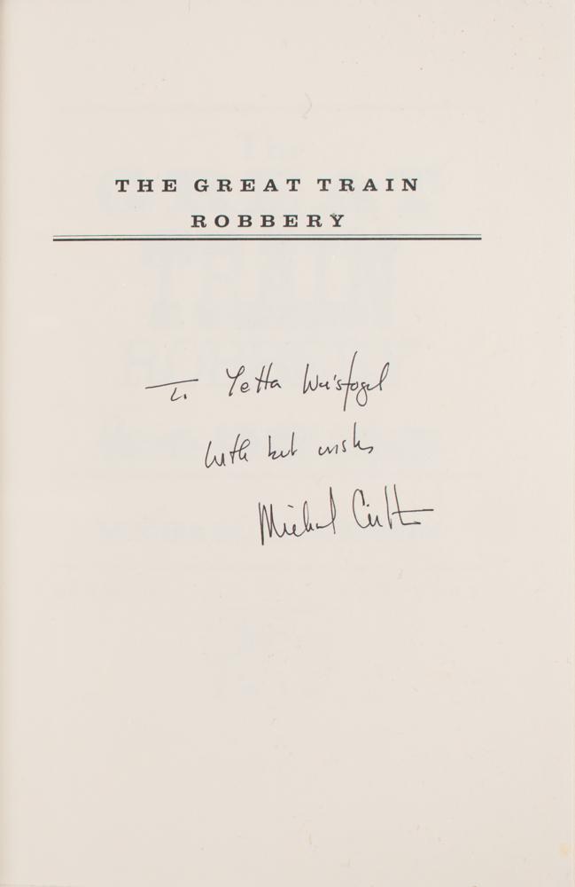 Signed book: The Great Train Robbery. First edition. NY: Alfred A. Knopf, 1975. Hardcover with dust jacket, 6 x 8.75, 266 pages. Signed and inscribed on the half-title page in black ink, "To Zetta Weisfogel, with best wishes, Michael Crichton." In fine condition. Crichton's third novel under his own name and his thirteenth novel overall, The Great Train Robbery was one of the best-selling books in 1975 and three years later was adapted into a film starring Sean Connery, Donald Sutherland, and Lesley-Anne Down. Crichton directed the film and, accordingly, he also wrote the screenplay.