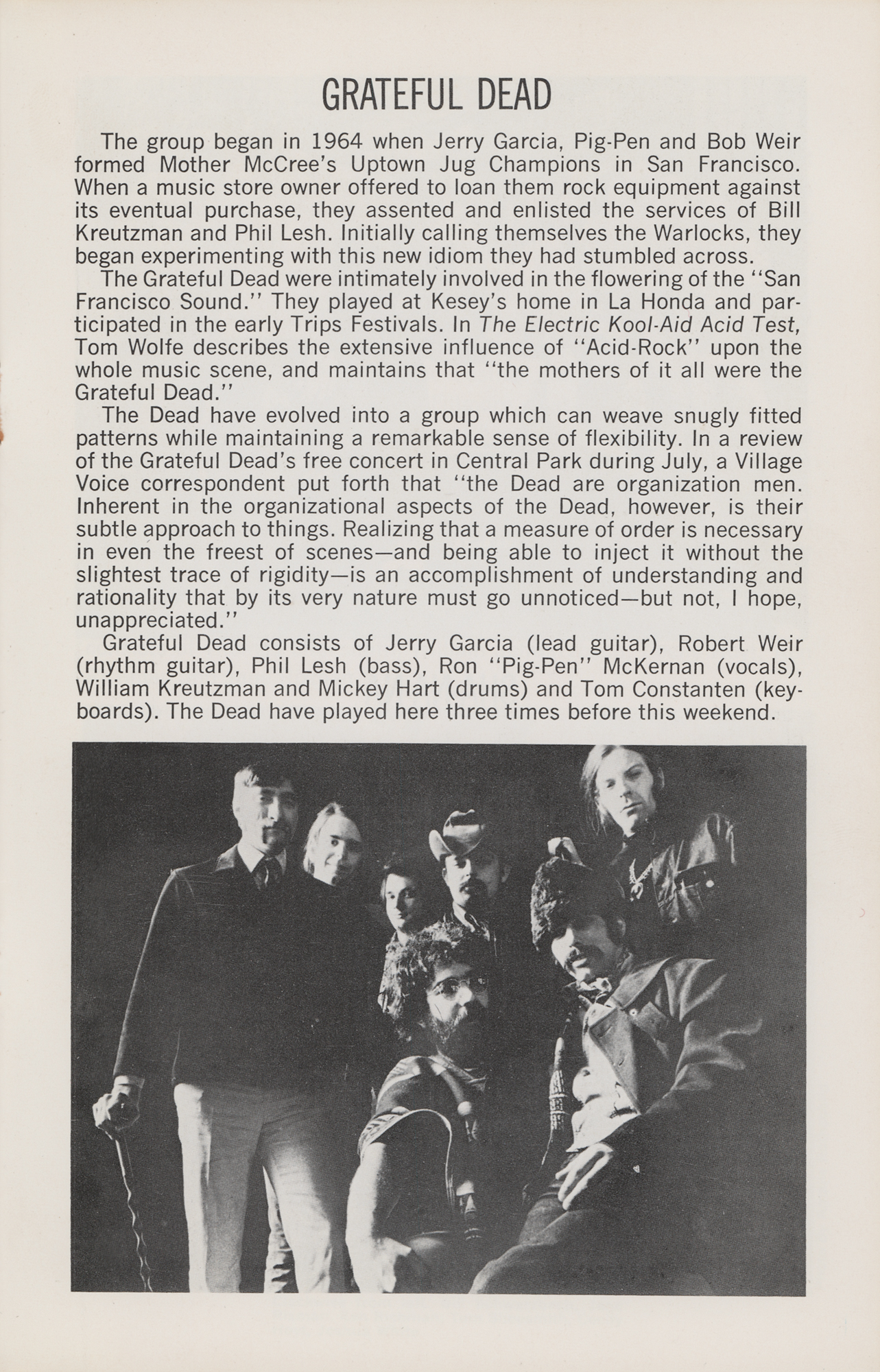 Unique weekend concert line up with the Grateful Dead opening for Country Joe