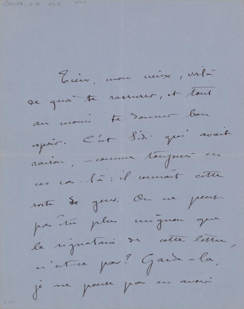 The daughter (1913-1981) of French writer Colette and her second husband, Henri de Jouvenel. Untranslated ALS in French, one page both sides, 7.75 x 10, no date. In fine condition.