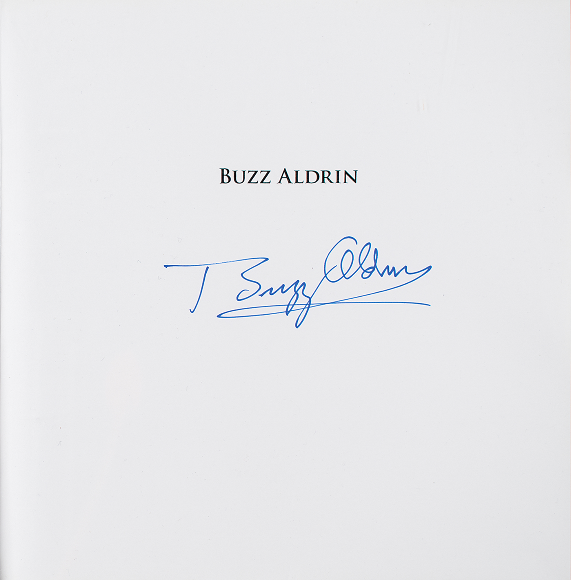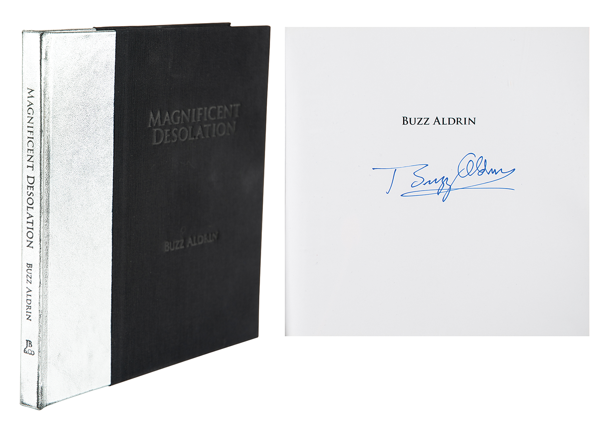 Signed book: Magnificent Desolation: Images from the Apollo 11 Lunar Mission with the Words of Astronaut Buzz Aldrin. First edition, limited issue, numbered 482/500. Reno, NV: Jack Bacon & Company, 2009. Hardcover, 8.25 x 8.25. Signed on the author's prefatory page in blue felt tip, "Buzz Aldrin." An extraordinary collection of more than 50 photographs from the historic Apollo 11 mission interspersed with the words of Aldrin, this volume was privately printed and differs from Aldrin's similarly titled autobiography. In fine condition, with minor rubbing to the spine. Accompanied by the publisher's certificate of authenticity.