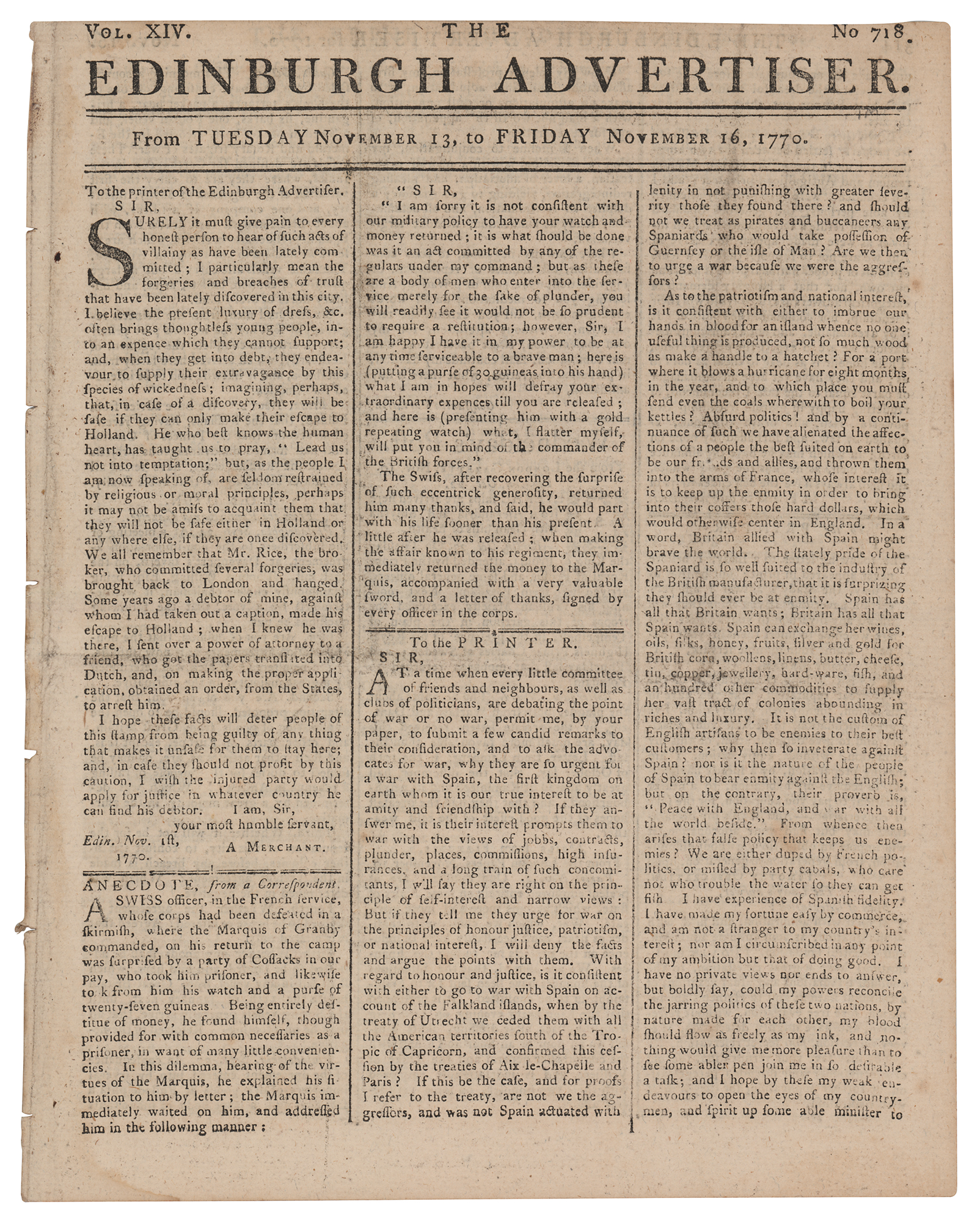 The Edinburgh Advertiser (November 13-16, 1770)