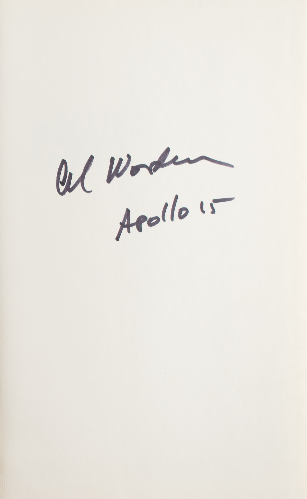 Al Worden's personally-owned signed book: Hello Earth: Greetings from Endeavour. First edition. Los Angeles: Nash Publishing, 1974. Hardcover with dust jacket, 6 x 8.5, 80 pages. Signed on the first free end page in black felt tip, "Al Worden, Apollo 15." In fine condition, with light wear to the dust jacket. A desirable volume of creative poetry written by Worden in response to the practically unfathomable experience of spaceflight.