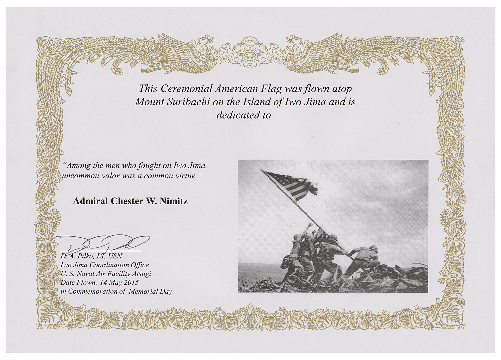 Iwo Jima Memorial Day Flown Flag: Rare American flag flown atop Mount Suribachi 70 years after the iconic flag raising