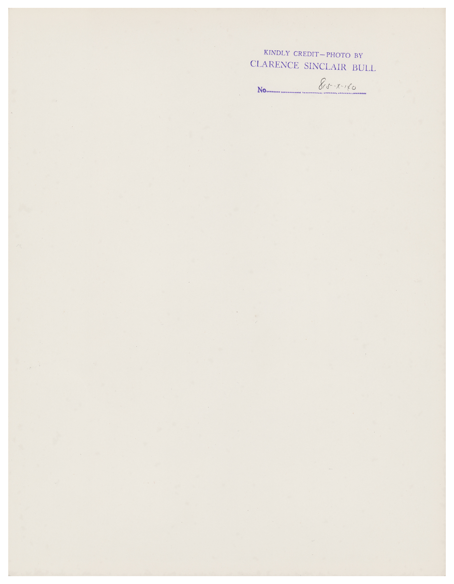 Lovely vintage matte-finish 10 x 13 silver gelatin photograph of Greta Garbo by acclaimed Metro-Goldwyn-Mayer photographer Clarence Sinclair Bull for the 1935 film Anna Karenina. Reverse features a Bull credit stamp, which is numbered "815-X-140." In very fine condition.