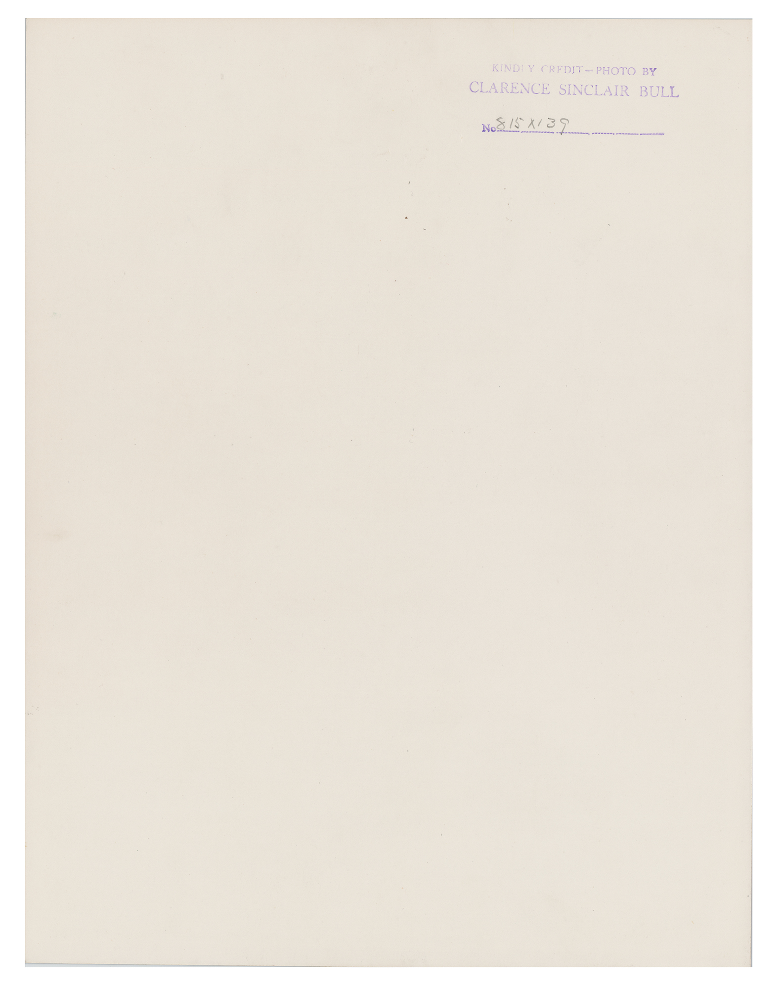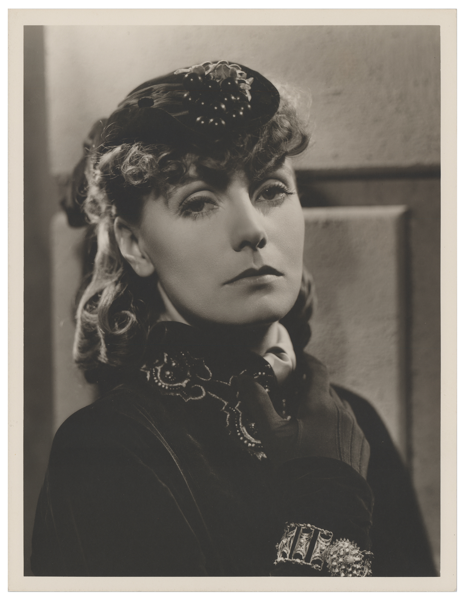 Vintage matte-finish 10 x 13 silver gelatin photograph of Greta Garbo by acclaimed Metro-Goldwyn-Mayer photographer Clarence Sinclair Bull for the 1935 film Anna Karenina. Reverse features a Bull credit stamp, which is numbered "815-X-139." In very fine condition.